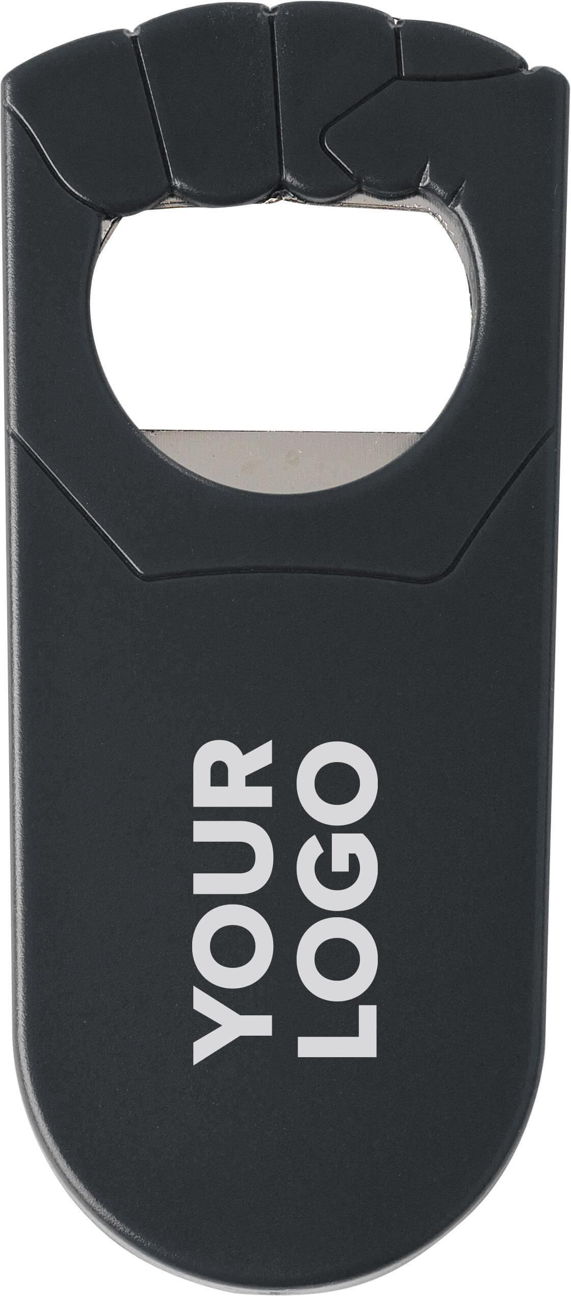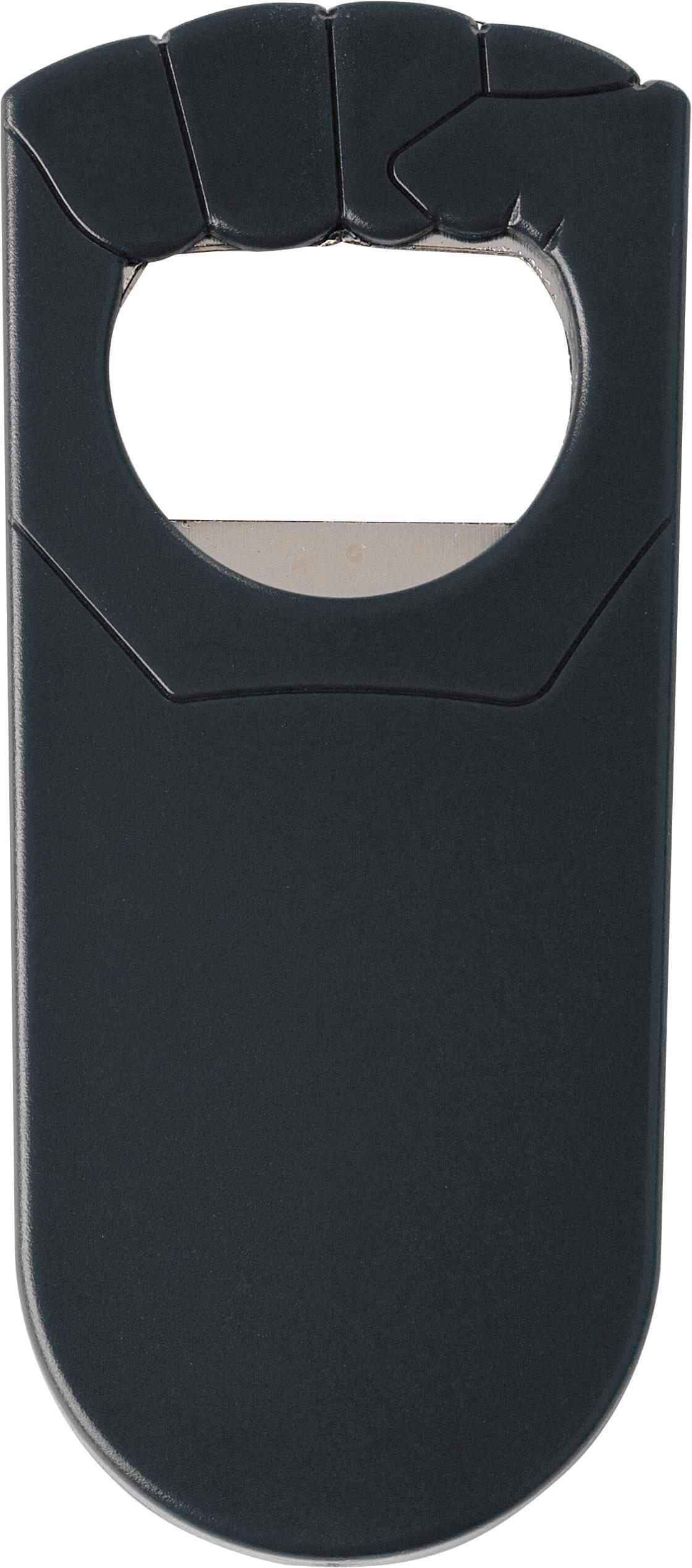 Abre cápsulas de plástico e metal com a forma de punho.