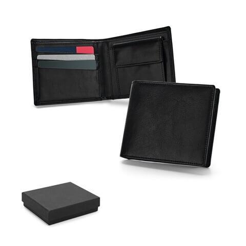 Carteira em pele com bloqueio de RFID, bolso para moedas, notas e com capacidade para 9 cartões. Fornecido em caixa de oferta.