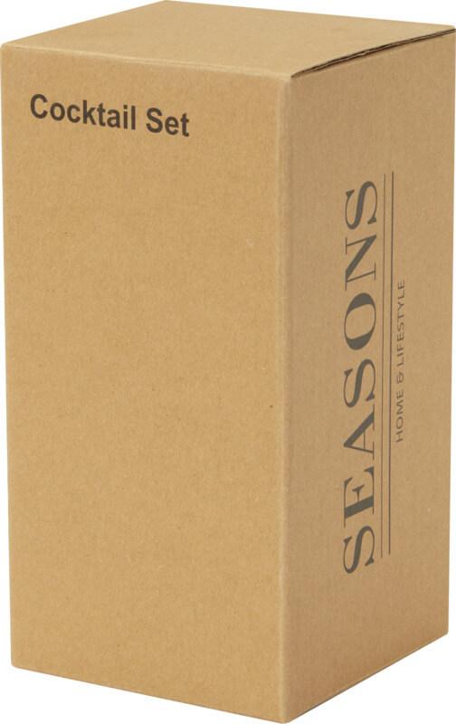 Agitador de cocktails feito de aço inoxidável reciclado, tornando-o uma alternativa mais sustentável aos agitadores de cocktails tradicionais. A utilização de um agitador de cocktails de aço inoxidável reciclado permite-lhe desfrutar dos seus cocktails favoritos, ao mesmo tempo que causa um impacto positivo no ambiente. Tamanho do agitador: 21,2 x 8,8 cm. Tamanho do medidor: 3,5 x 4,1 x 7 cm. Capacidade volumétrica do agitador: 500 ml. Capacidade volumétrica do jigger: 25 ml e 50 ml. Não adequado para máquina de lavar louça ou micro-ondas. Embalado num saco de polietileno reciclado e depois colocado numa caixa de papel kraft reciclado.