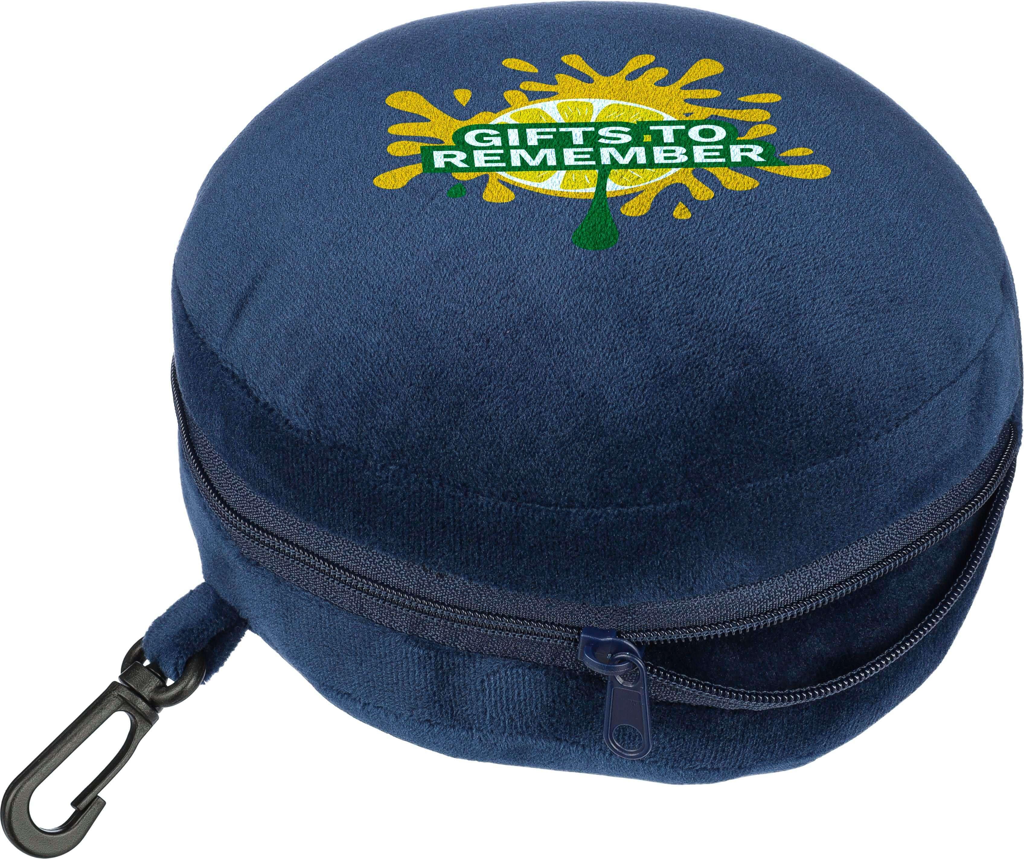 Conjunto de almofadas de viagem em poliéster com enchimento macio em poliéster e algodão PP. Inclui uma máscara para os olhos e transforma-se numa almofada quando aberto. Inclui um mosquetão em PP para uma fixação fácil durante a viagem.