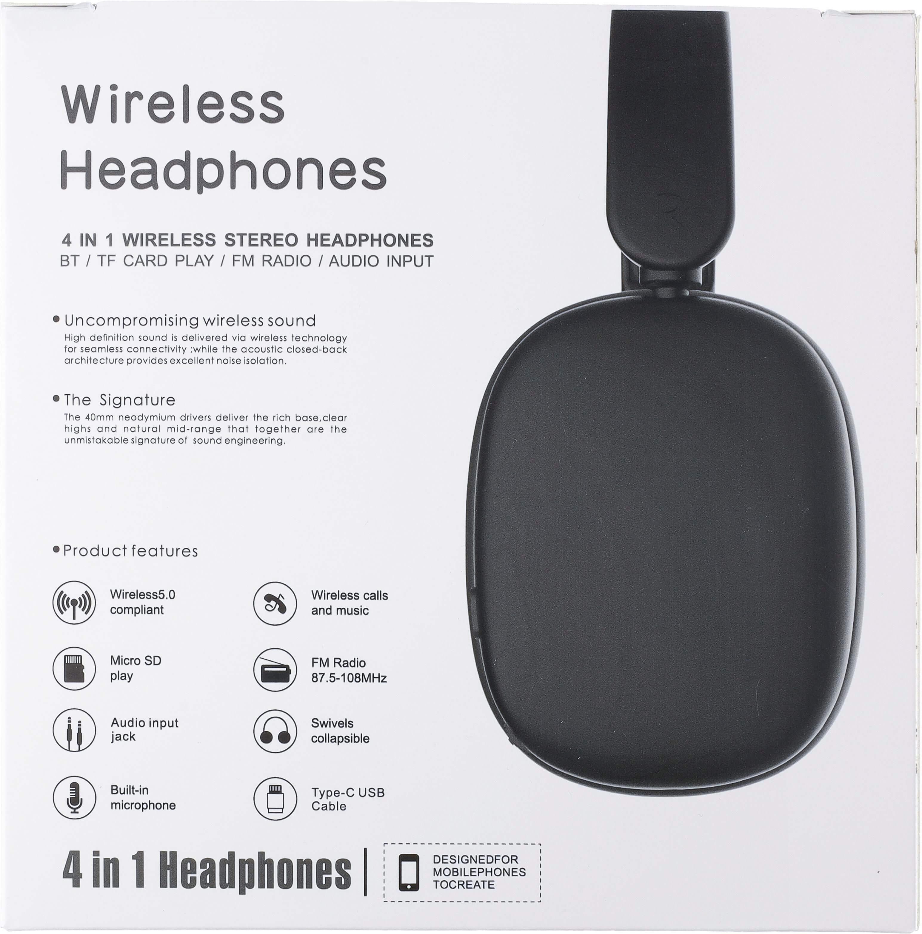 Auriculares sem fios em ABS com uma bateria com capacidade de 250 mAh. Ligação tipo C. Tempo de reprodução de aprox. 10 horas, com um tempo de espera de aprox. 200 horas. O tempo de carregamento é de 2 horas. Inclui rádio FM, inserção de cartão TD e tecnologia de ligação sem fios 5.3. Gama de frequências: 20-20.000 Hz. 32 Ohms, classificação de decibéis: 105 dB ± 3 dB. Distância de funcionamento sem fios: 10-20 metros. Apresentado por peça, incluindo cabo de carregamento e manual, numa caixa de oferta.