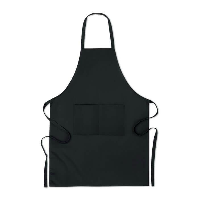 Avental de cozinha com 2 bolsos frontais em algodão orgânico 200 gr/m². Este produto tem a certificação OEKO-TEX® STANDARD 100.