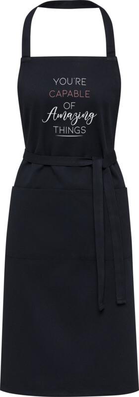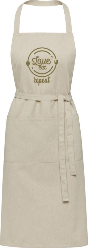 O avental “Shara” é feito de 70 % algodão reciclado e 30 % poliéster reciclado de 240 g/m2, tornando-o espesso e resistente, e confortável de usar. Possui 2 bolsos adjacentes (cada um com 22 x 20 cm) e um fecho de atar de 1 metro. O avental incorpora fibras recicladas “Cyclo®” onde reutilizam resíduos pré-separados que determinam a cor do fio. Estas fibras não só reduzem a procura por recursos virgens, mas também demonstram um compromisso com uma vida circular, incorporando a essência da redução de resíduos e da promoção de um sistema de circuito fechado. Cada avental vem também com um rastreador “Aware™”. Esta funcionalidade inovadora permite aos utilizadores rastrear as origens e o percurso do seu artigo através de um código QR, aumentando a transparência na cadeia de abastecimento e promovendo uma ligação mais forte entre o produto e o seu processo de produção.