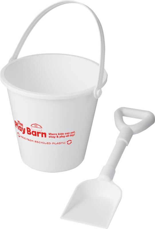 Um essencial de praia fabricado de plástico reciclado pós-consumo. O balde e a pá têm um acabamento salpicado devido à natureza do material reciclado. O volume do balde é de 1250 ml. Em conformidade com a norma EN71. Disponível nas cores correspondentes, ou contacte-nos para mix and max !