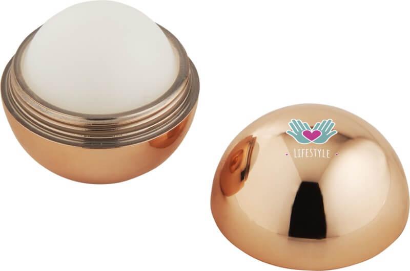 Bálsamo labial com aroma de baunilha para manter os lábios hidratados e protegidos do sol (SPF15). A estrutura externa é feita de plástico.