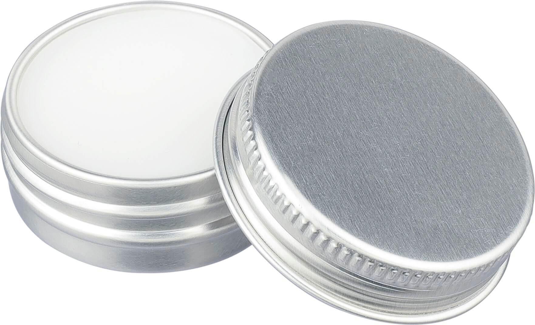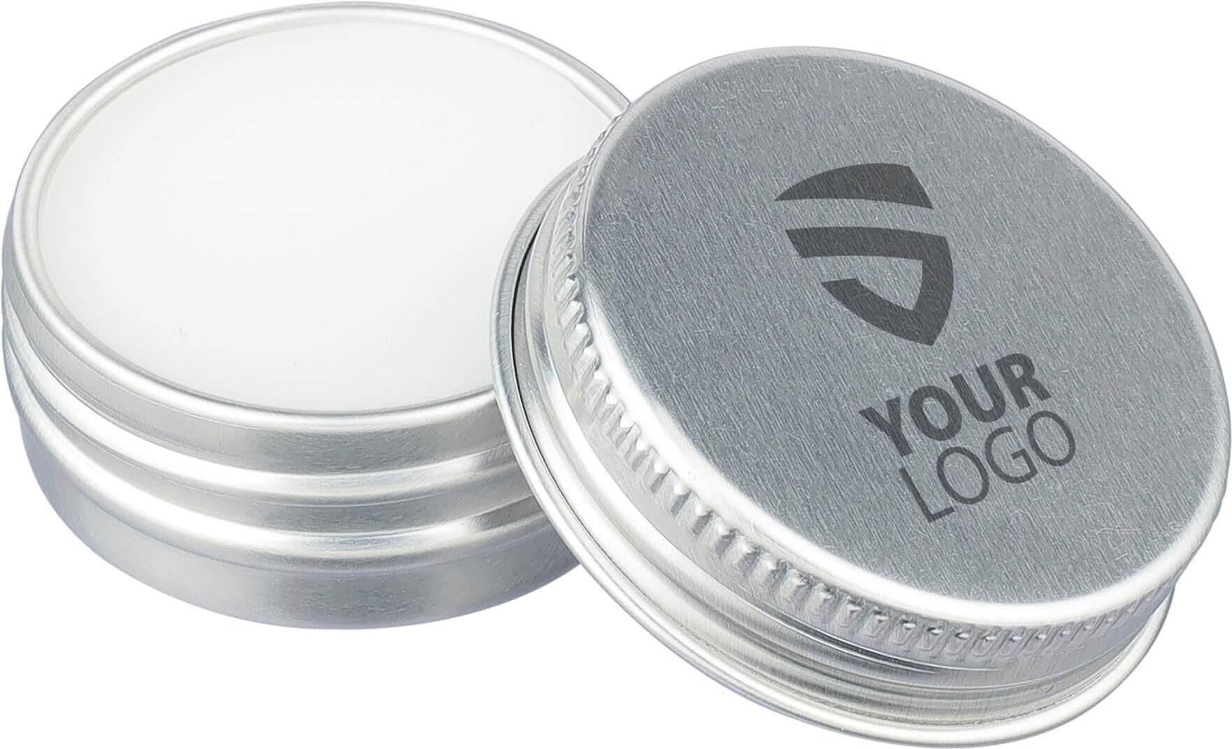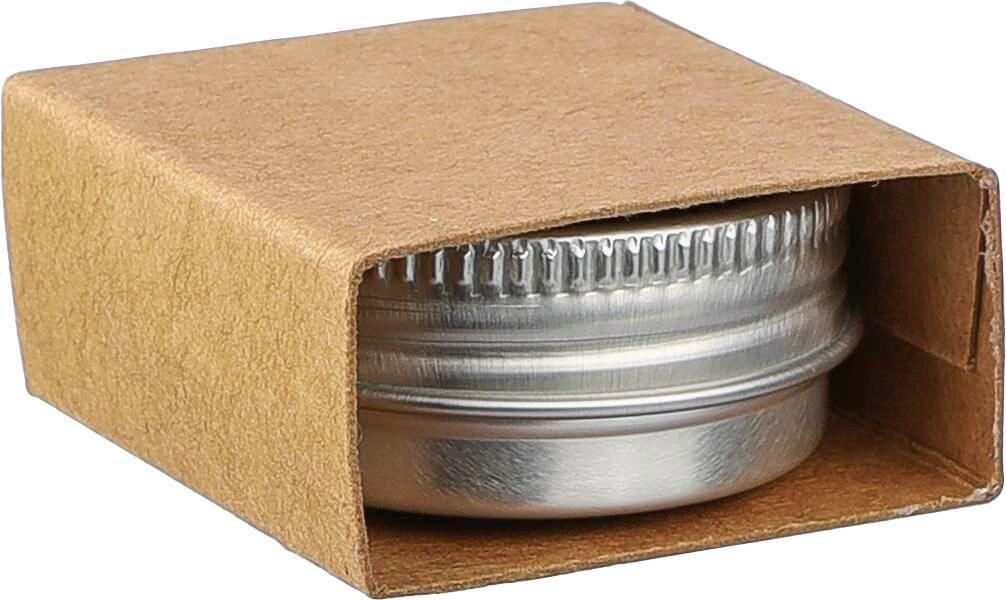 Lata metálica com bálsamo labial (12 gramas). FPS 10. Testado dermatologicamente. Validade 3 anos após a produção. Apresentados individualmente numa caixa de cartão castanha.