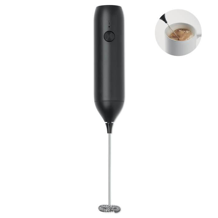Batedor de leite elétrico portátil em ABS com acabamento mate. Bateria incorporada com capacidade de 500 mAh. Recarregável por USB tipo C (cabo incluído). Velocidade: 10 000 rpm.