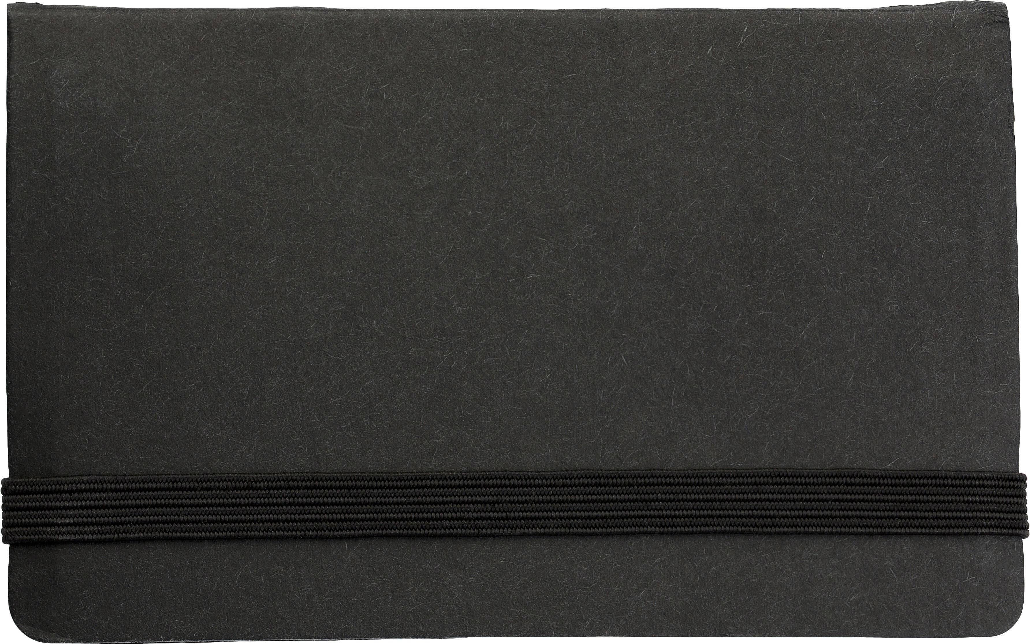 Estojo de cartão com 150 tiras e memos adesivos. Com bolso interno para os cartões de visita. Fecho com elástico.
