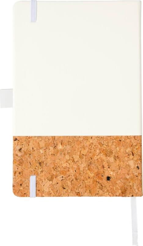 Bloco de notas moderno de tamanho A5 com capa dura e parte inferior em PU. Apresenta um fecho elástico colorido a condizer, fita marcadora, 80 folhas de papel pautado em cor bege de 80 g/m² e um bolso expansível na parte de trás para guardar pequenas notas. Apresenta-se num estojo preto.