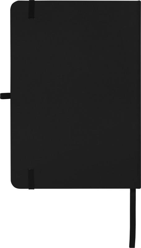 O bloco de notas de capa dura A5 “Teak” feito de cartão reciclado e com cantos arredondados não é apenas um artigo essencial para o escritório, mas também uma ótima oportunidade para promover a sua marca. O bloco de notas tem 96 folhas pautadas de papel de 70 g/m2 e uma capa macia. Vem com uma argola para a caneta, um fecho elástico e um marcador de fita.
