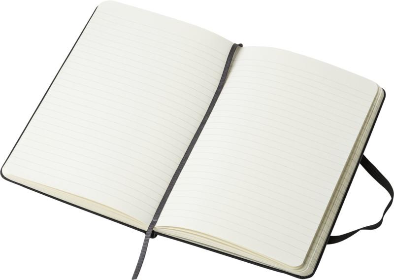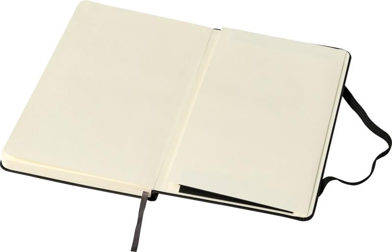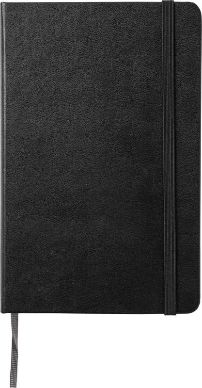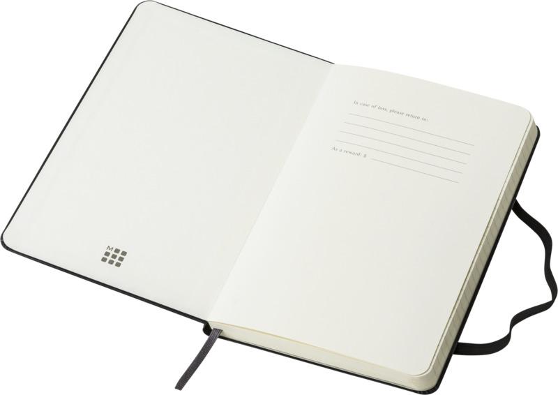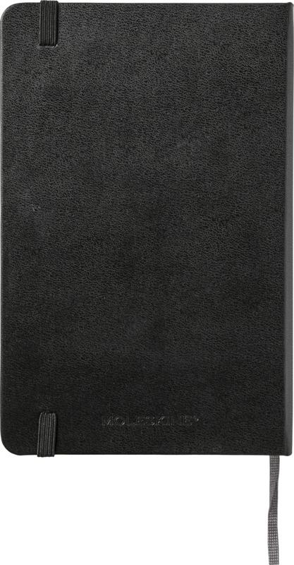 O bloco de notas de capa dura “Moleskine Classic” está agora disponível em tamanho médio. Possui os icónicos cantos arredondados, fecho elástico e marcador de livro de fita. Bolso interno expansível no interior da contracapa. Contém 208 páginas pautadas de cor marfim.