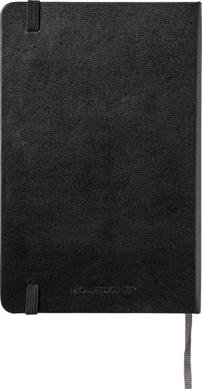 O bloco de notas de capa dura “Moleskine Classic” está agora disponível em tamanho médio. Possui os icónicos cantos arredondados, fecho elástico e marcador de livro de fita. Bolso interno expansível no interior da contracapa. Contém 208 páginas pautadas de cor marfim.