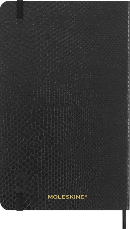 O bloco de notas grande “Vegea Boa” apresenta uma capa mole com efeito python vegano, cantos arredondados com fecho elástico e um marcador de fita a combinar. Os blocos de notas contêm papel cor de marfim isento de ácido e incluem um bolso interno expansível que contém a história da “Moleskine”. Entregue numa caixa de presente.