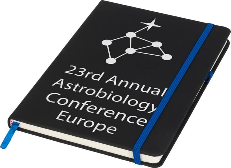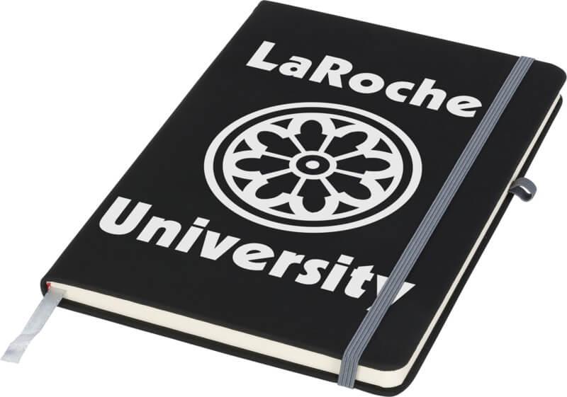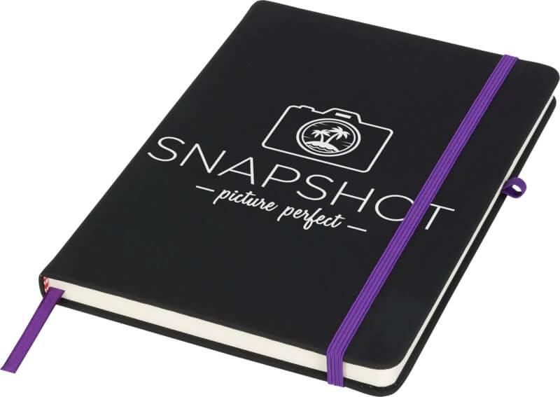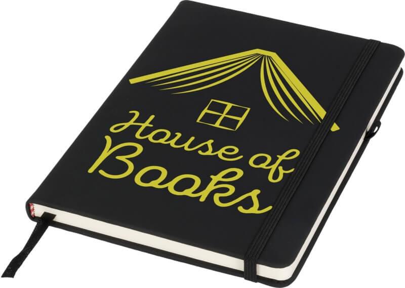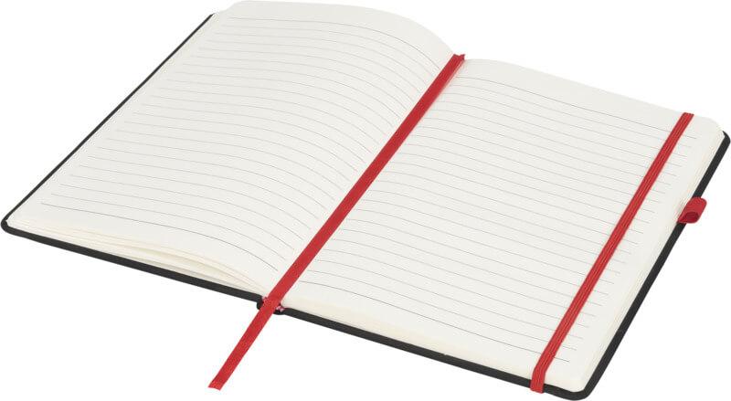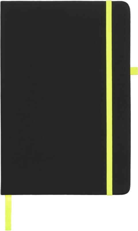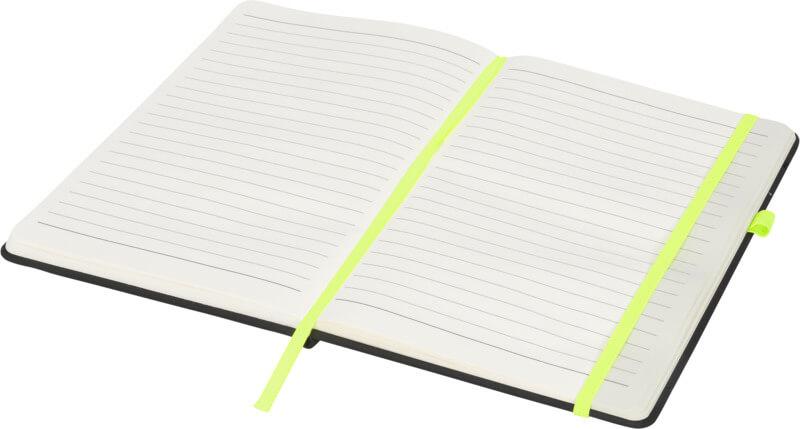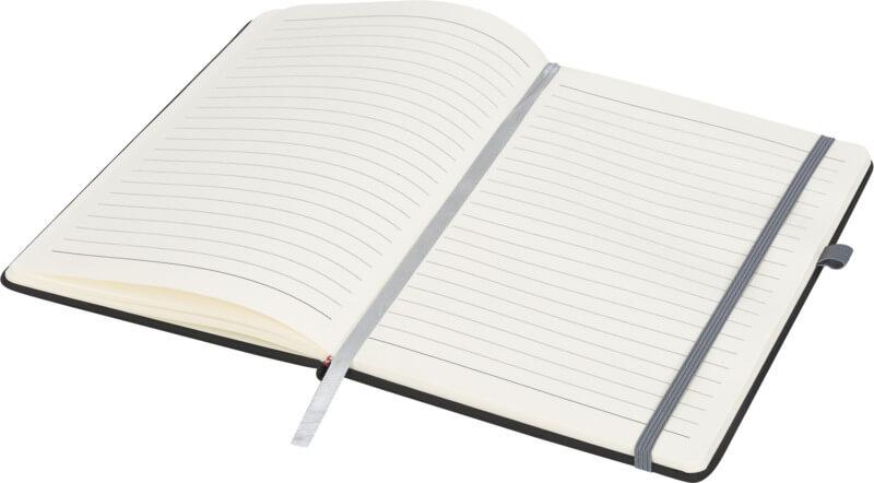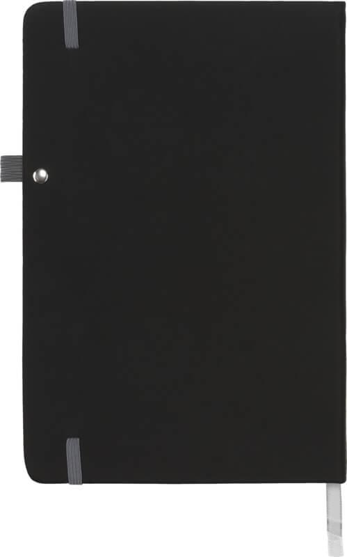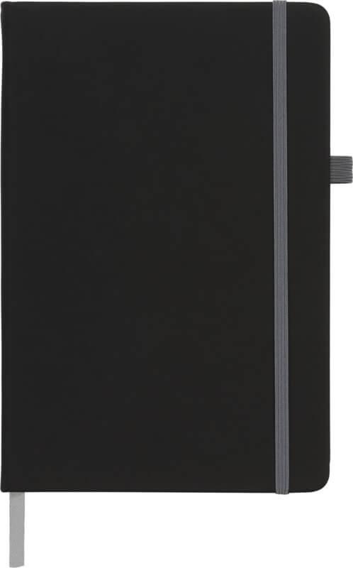O bloco de notas “Noir” possui uma capa de PU preta de tacto suave, para dar-lhe um acabamento táctil. Cada caderno apresenta uma fita colorida para fechar, uma alça para esferográfica e uma fita marcador. O caderno contém 96 folhas (70 g/m²) de papel pautado em tom bege.