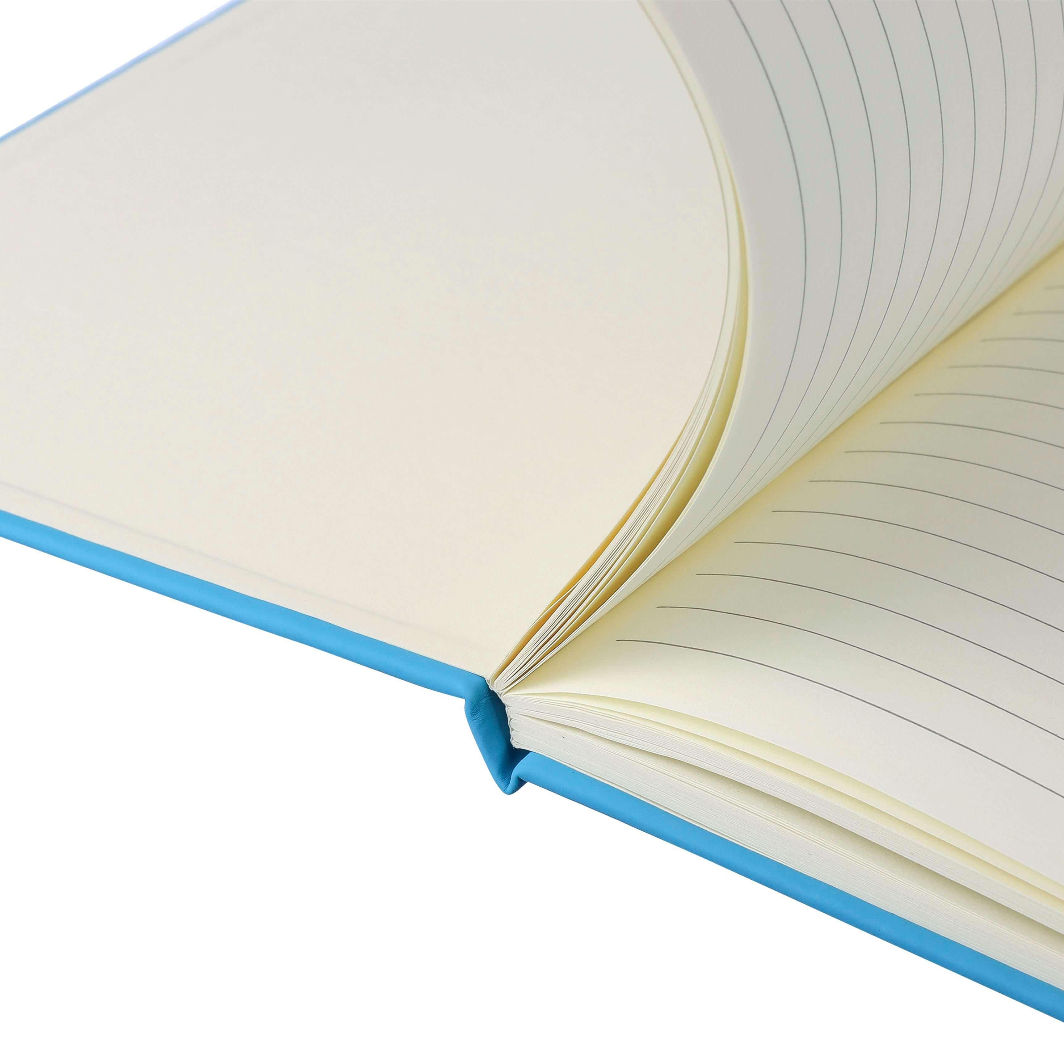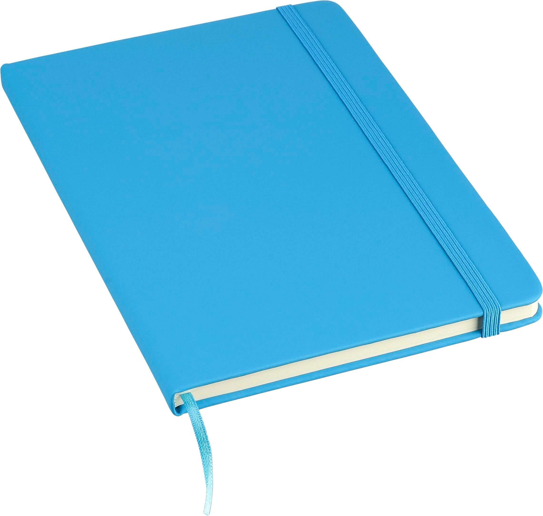 Bloco de notas rPET (aprox. A5) com capa dura em PU rPET, contendo 80 folhas pautadas (70 g/m²). Inclui um elástico e uma fita de cor a condizer. Inclui um logótipo reciclado em relevo na parte de trás