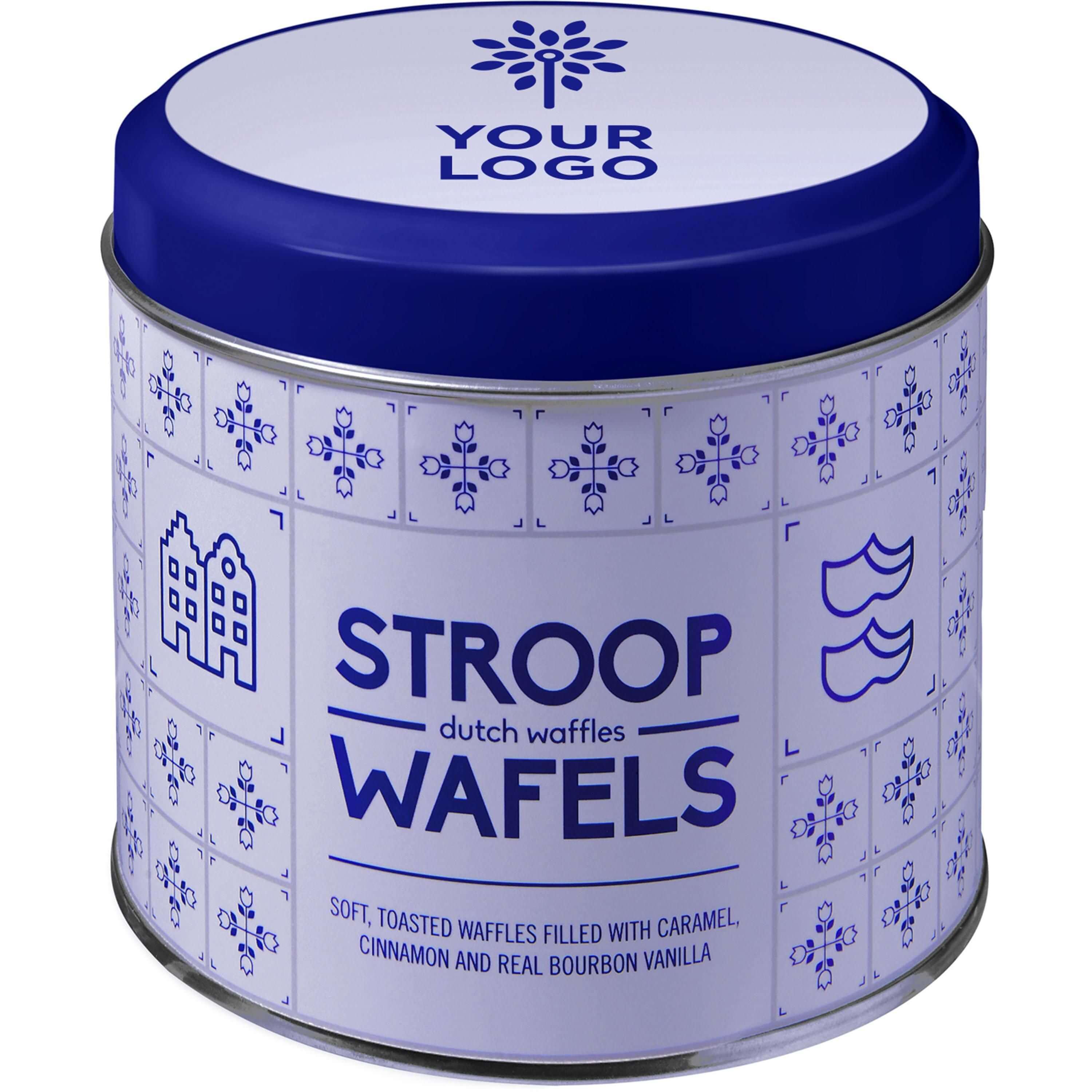 8 deliciosas bolachas Holandesas com recheio de caramelo no seu interior, embalado em saco de plástico e apresentados em lata com motivos Holandeses e a tampa branca para personalização. A lata e as bolachas são entregues separadamente. Autênticos stroopwafels holandeses feitos com ingredientes naturais. Duas bolachas (8% de manteiga) e recheio de xarope de caramelo (50% de xarope). Preparados com ingredientes naturais e sem sabores artificiais.