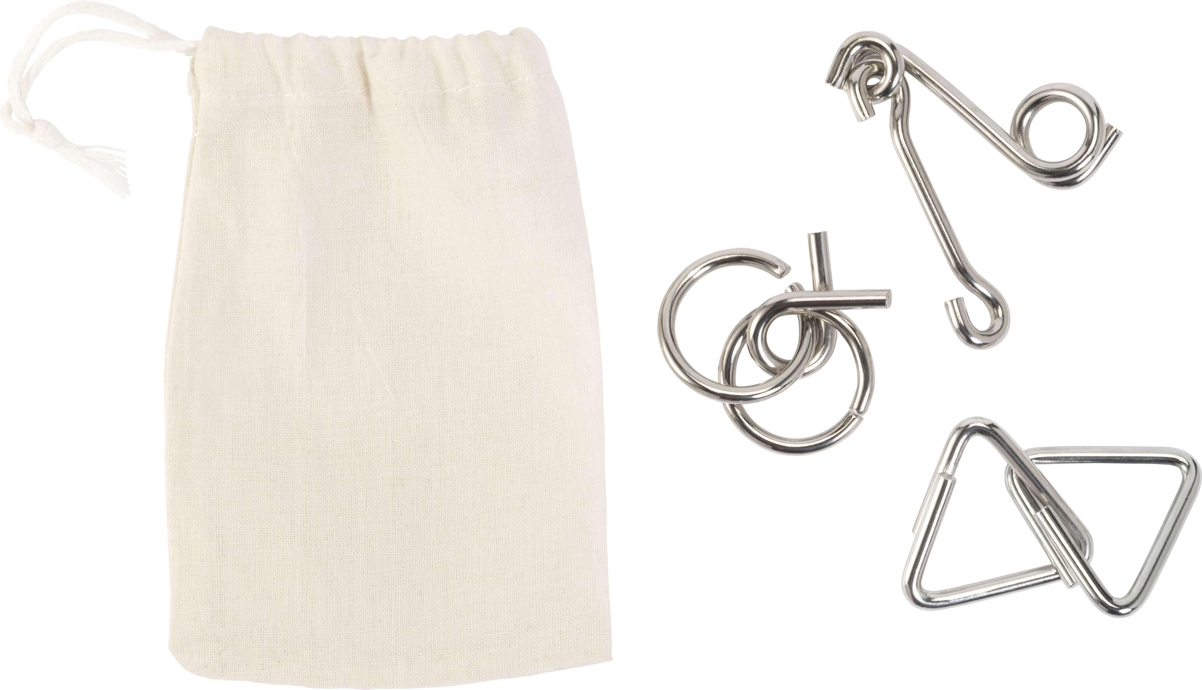 Conjunto de 3 jogos de habilidade de aço inoxidável e apresentados em um saco de algodão (80 grs) com cordão