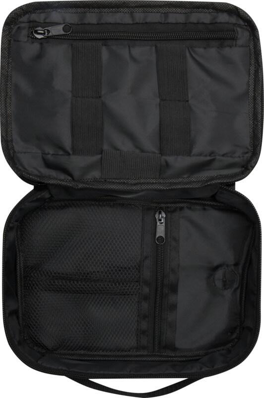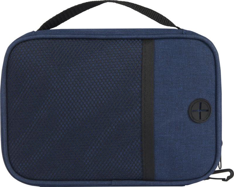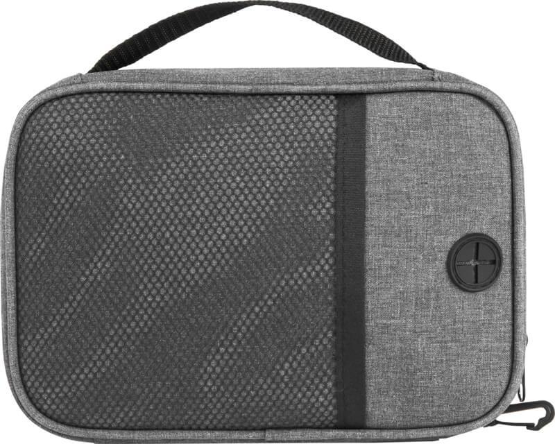 A bolsa para aparelhos eletrónicos reciclada certificada GRS “Ross” é ideal para pessoas em constante movimento e pode manter powerbanks, cabos de carregamento ou quaisquer outros acessórios eletrónicos organizados. Com vários bolsos, alças elásticas e uma zona de passagem de cabo que permite o armazenamento de um powerbank dentro da bolsa enquanto carrega um telefone. Também tem um gancho mosquetão de plástico para fixação a outra bolsa. Capacidade: 1 litros.