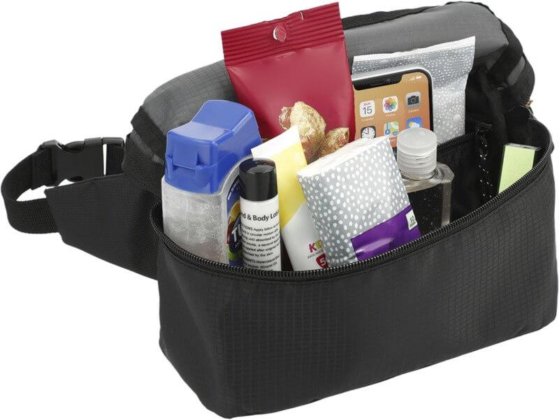 Feita com tecido GRS reciclado e repelente de água e também forro GRS reciclado, a bolsa para cintura “Trailhead” possui um compartimento principal com fecho de correr, um cinto ajustável e um bolso com fecho de correr dentro do compartimento principal para armazenamento extra. Também tem um padrão de grade de tendência, adicionando um toque de estilo.