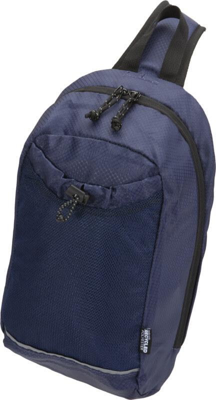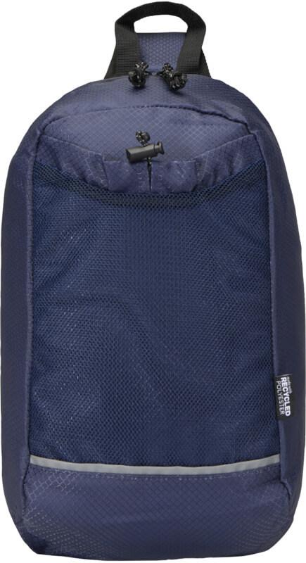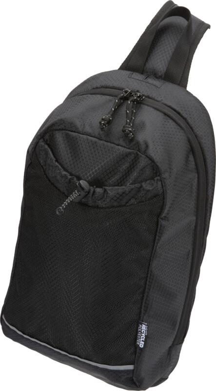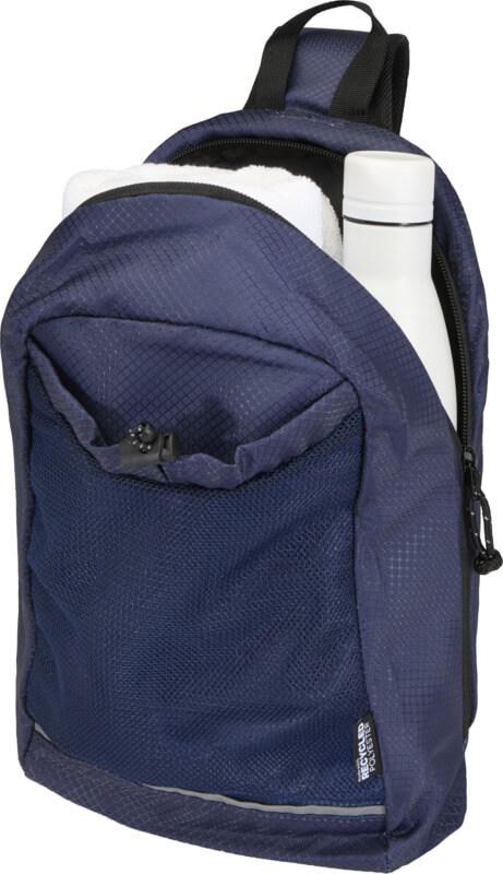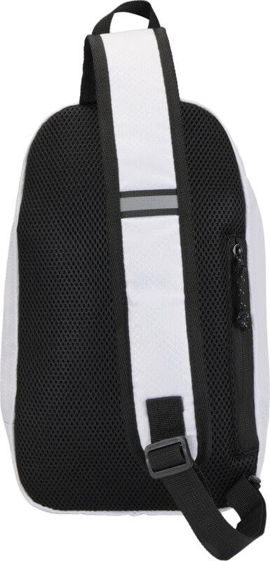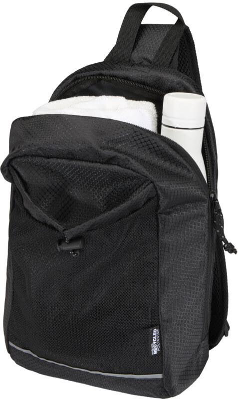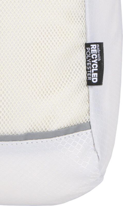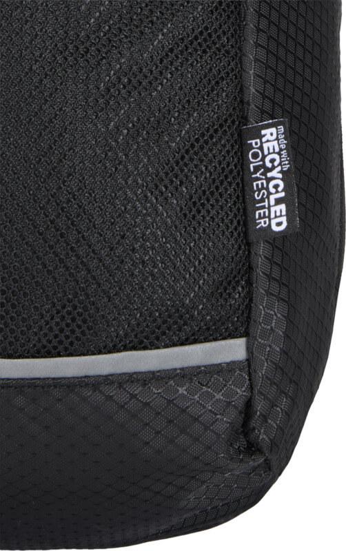 A bolsa de hidratação tiracolo “Nomad” é feita de tecido ripstop reciclado com certificação GRS, com um acabamento impermeável, revestimento RPET com certificação GRS e elementos refletores. Foi concebida para caminhadas rápidas, corta-mato, festivais ou qualquer atividade em que precise de transportar água e artigos essenciais sem volume extra consigo. A bolsa inclui um compartimento principal com fecho de correr e um bolso interno, um bolso frontal de malha com cordão elástico para segurar uma garrafa de água com segurança e um bolso grande de acesso rápido na parte de trás para o seu telemóvel ou outros artigos pequenos. A alça ajustável e a parte traseira de malha respirável proporcionam conforto ao transportar. Capacidade volumétrica: 6 litros.