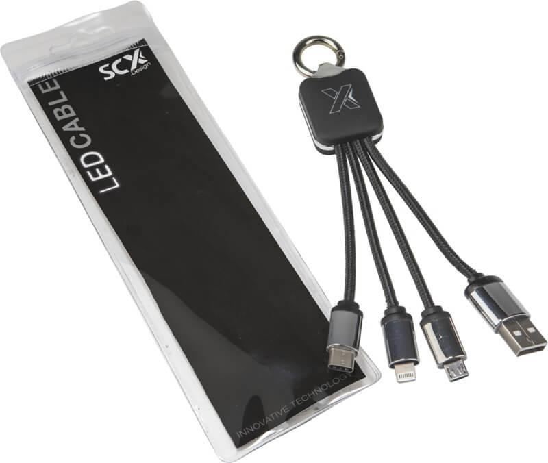 Cabos USBCabo de carregamento de logótipo luminoso RPET 5 em 1 e base de carregamento de 10 W “SCX.design C40”