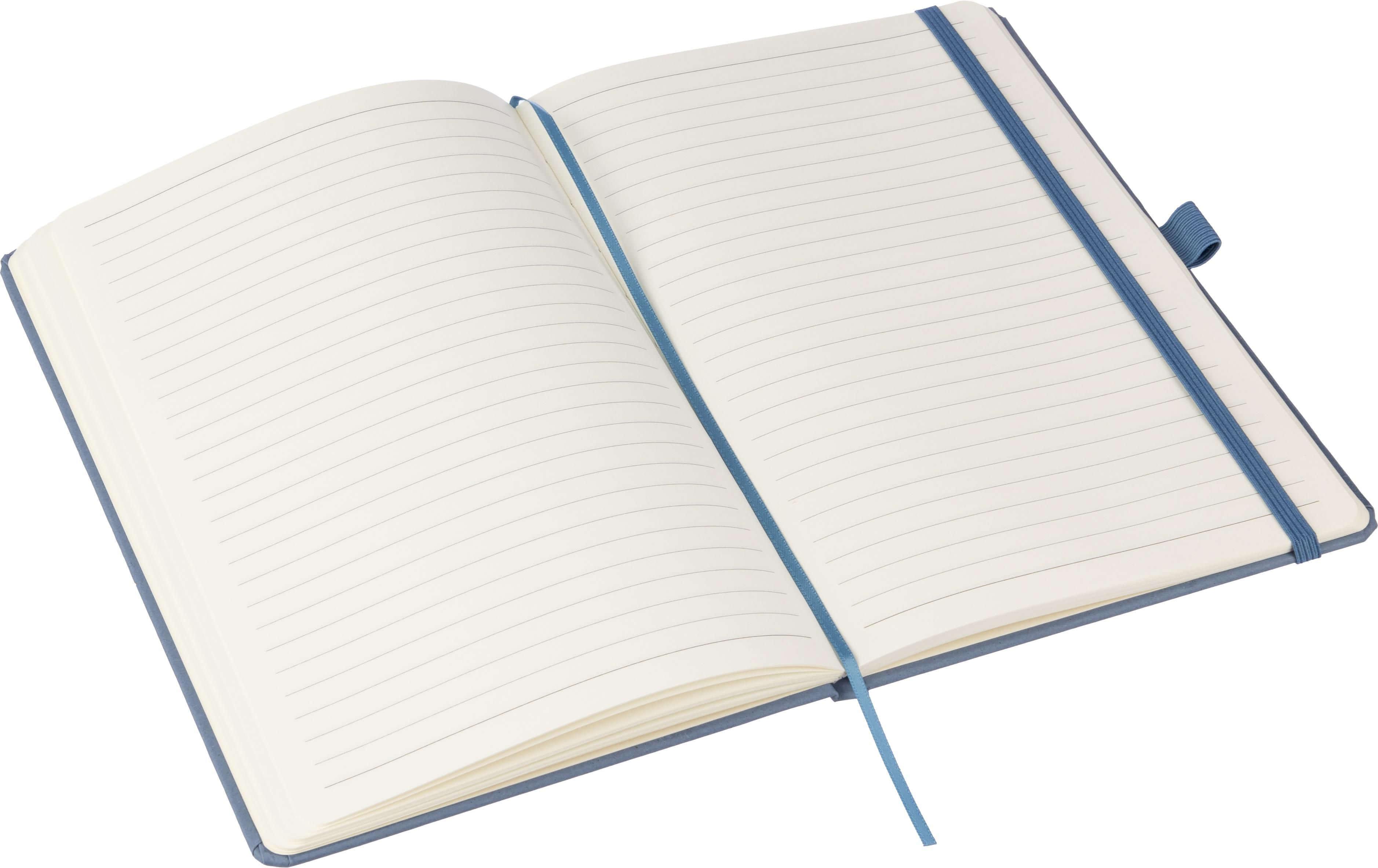 Caderno (A5) em cartão (85%) e resíduos biológicos reciclados(15%) com 80 folhas pautadas, impresso com tinta de soja. O papel neste caderno é certificado FSC® Mix. Cada caderno tem gravado no verso a cor do resíduo em questão: verde para os citrinos, vermelho para as cerejas, azul para a alfazema, caqui para as uvas e castanho claro para as avelãs. O caderno é forrado com papel Favini de Itália e inclui papel de 70 g/m².