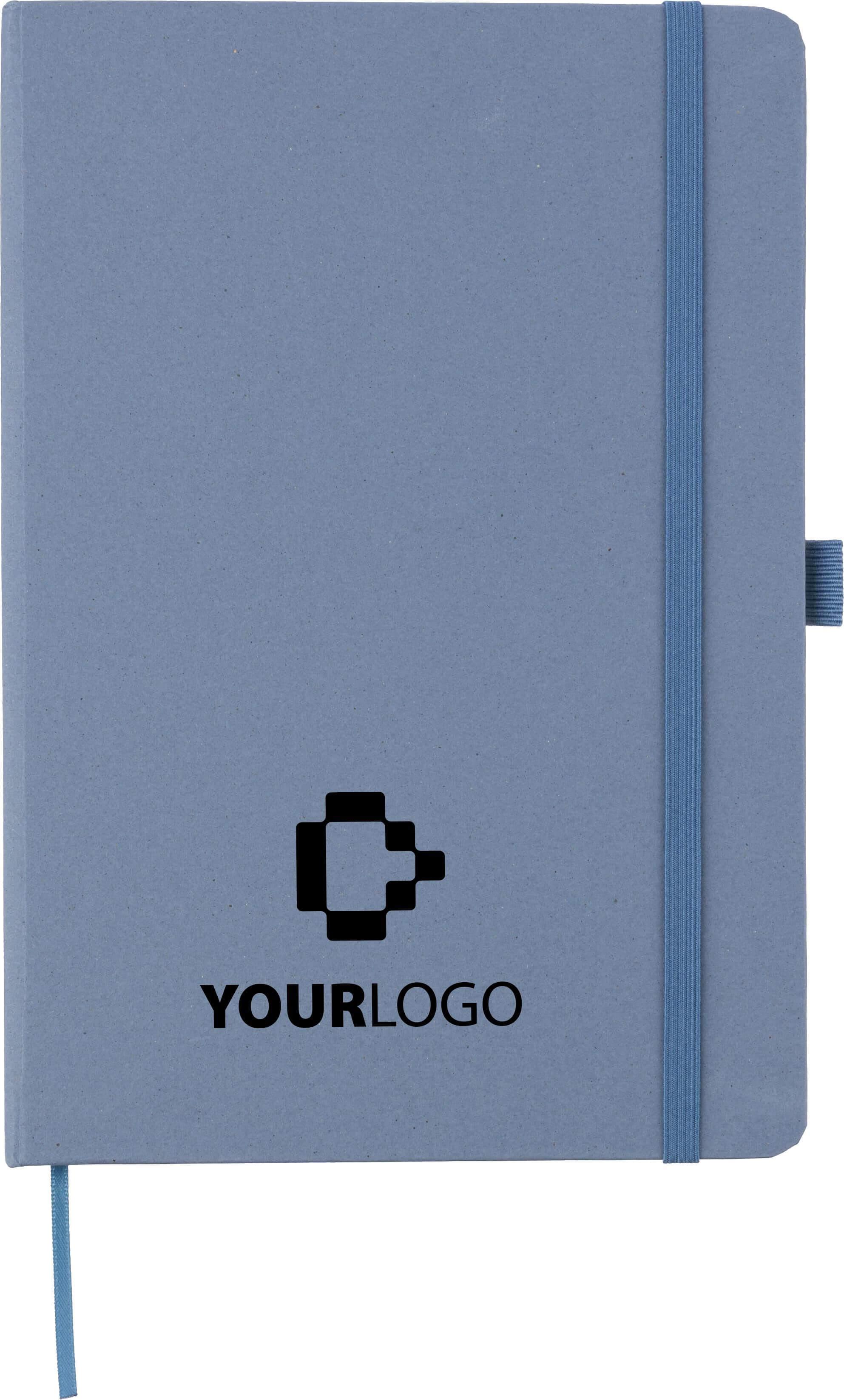 Caderno (A5) em cartão e resíduos biológicos reciclados com 80 folhas pautadas, impresso com tinta de soja. Cada caderno tem gravado no verso a cor do resíduo em questão: verde para os citrinos, vermelho para as cerejas, azul para a alfazema, caqui para as uvas e castanho claro para as avelãs. O caderno é forrado com papel Favini de Itália e inclui papel de 70 g/m².