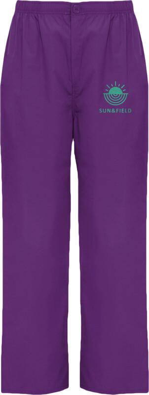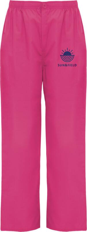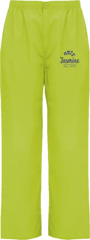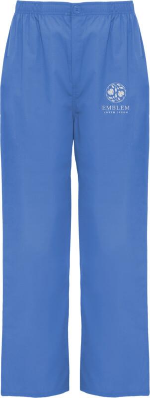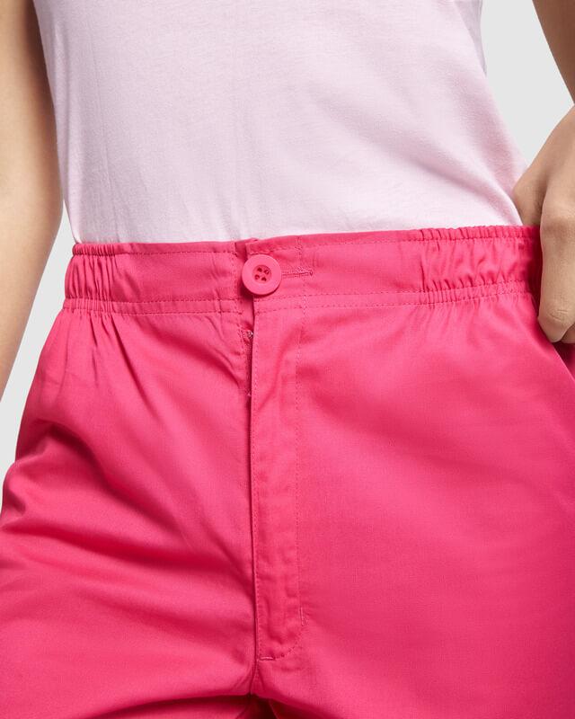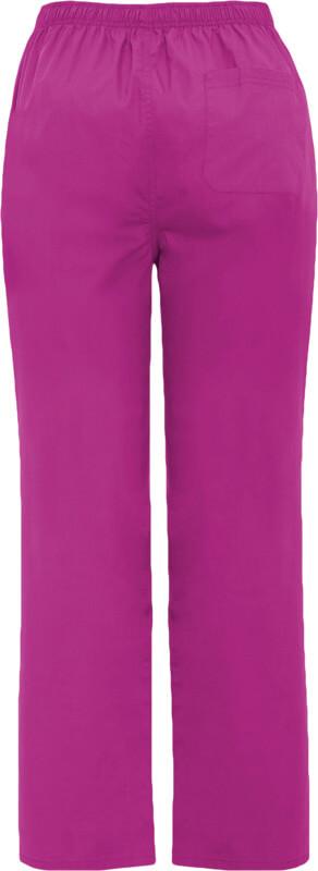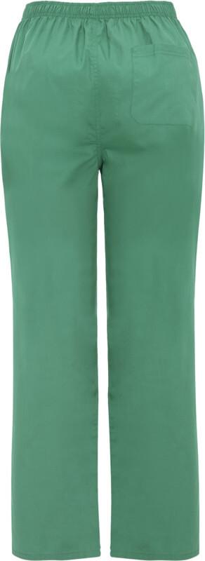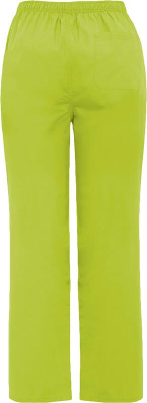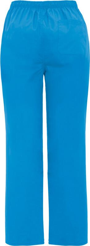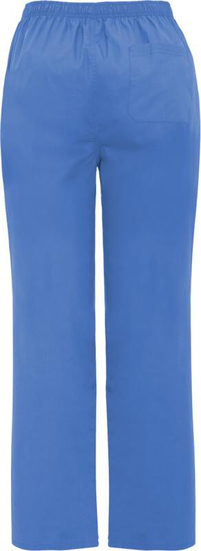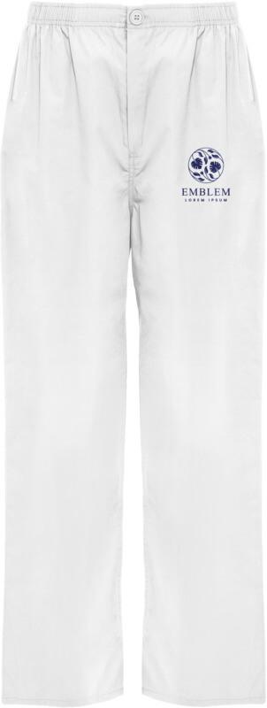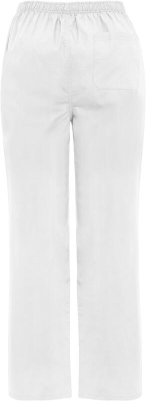 Calças de serviço unissexo. Corte reto. Cós elástico. Fecho com fecho de correr e botão. Bolso traseiro.