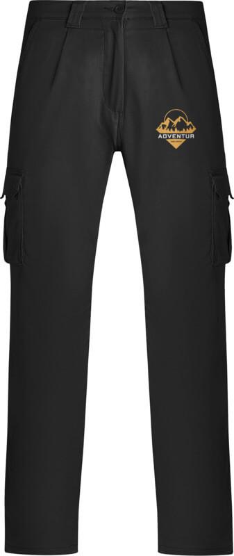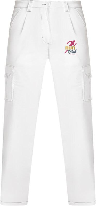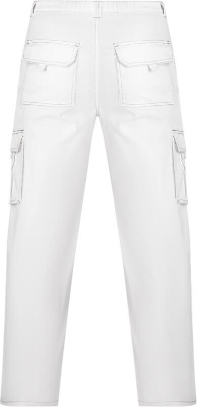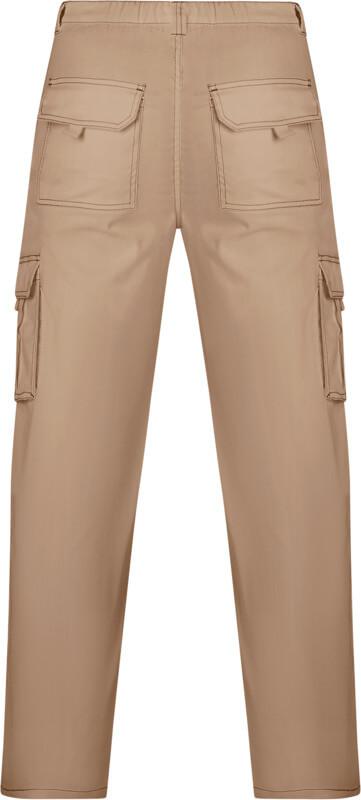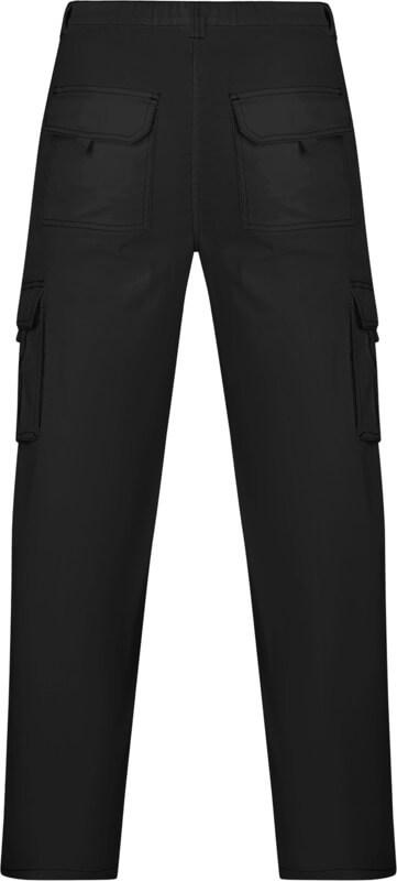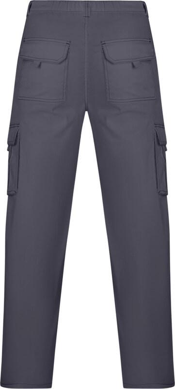 Calças de trabalho compridas com elastano. Tecido confortável e ajustável. Cintura elástica ajustável na traseira. Dois bolsos frontais. Dois bolsos traseiros funcionais com aba e fecho de velcro. Dois bolsos laterais funcionais com fole, aba e fecho de velcro. Costuras contrastantes.