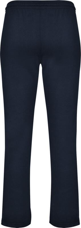 Calças de corte direito com dois bolsos laterais e cintura elástica ajustável com cordão.