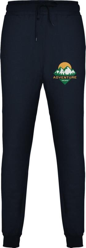 Calças desportivas com cintura larga ajustável, cordão, punhos justos nas pernas, costuras reforçadas, bolsos laterais canelados e bolso traseiro de canto com vista costurada. Etiqueta removível.