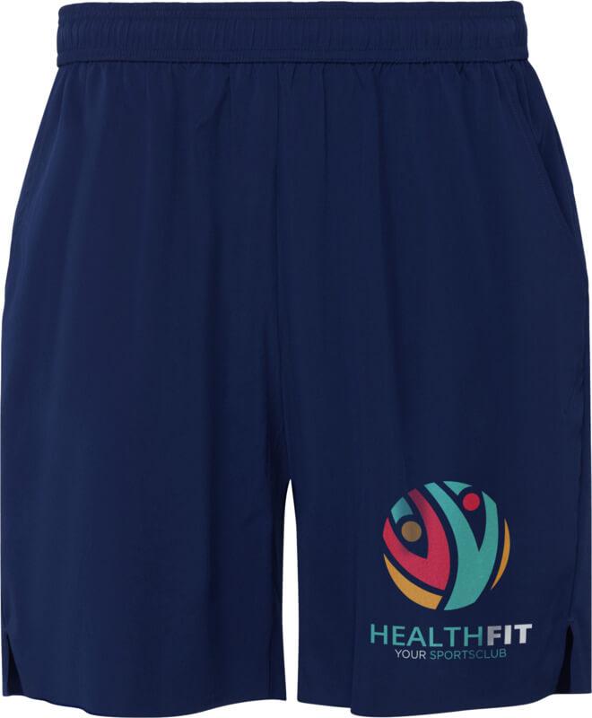 Leves e elásticos. Feitos de poliéster reciclado. Cós elástico com cordões e tira elástica nas costas. Bolsos laterais grandes. Costuras com acabamentos selados a quente. Combinados com tecido microperfurado no escapulário e nos bolsos para maior respirabilidade. Etiqueta removível.