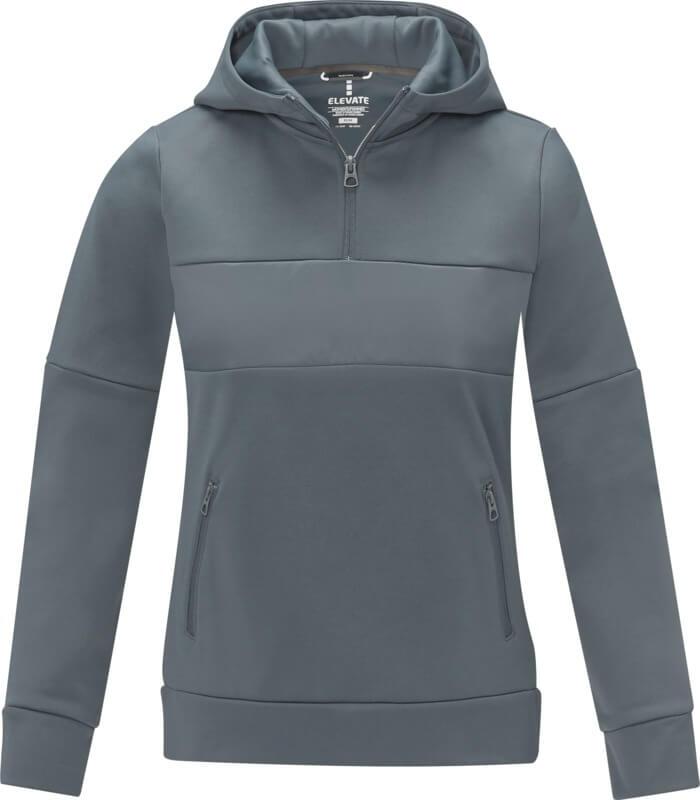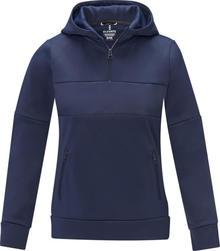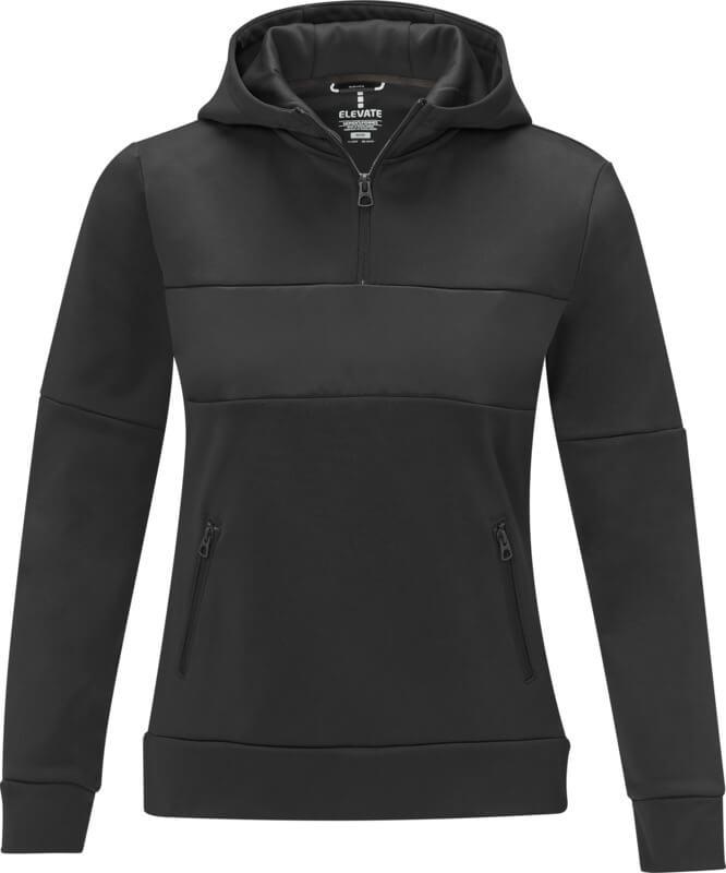 A camisola com capuz anoraque Sayan para mulher, com meio fecho, é uma combinação única de desempenho e estilo. O design do anoraque combina moda e função na perfeição, com um quarto de fecho para versatilidade na sobreposição. Fabricada com uma mistura de 350 g/m² de poliéster e malha Sorona®. A fibra Sorona® melhora o carácter ecológico do casaco ao incorporar um elemento sustentável sem comprometer o desempenho. O tecido de contraste no painel frontal, feito de nylon ripstop 280T, contribui para o design com a sua durabilidade e textura e é o local ideal para mostrar a sua marca. Quer esteja a embarcar numa aventura ao ar livre ou simplesmente a navegar na sua rotina diária, a camisola com capuz Sayan combina sem esforço a moda com a funcionalidade. Esta camisola foi concebida com uma forma ajustada para um visual feminino.