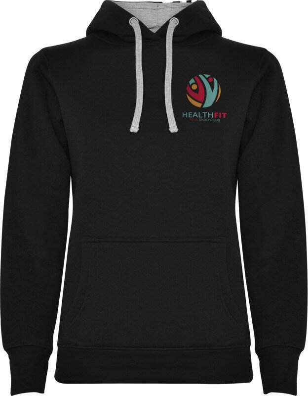Sweatshirt de corte justo com capuz de duas cores com tecido duplo, cordão ajustável em contraste, tapa costuras na gola e bolso canguru. Punhos e bainha em canelado de elastano 1×1. Pormenor de fenda no polegar. Etiqueta amovível. O modelo mede 179 cm e veste o tamanho S.