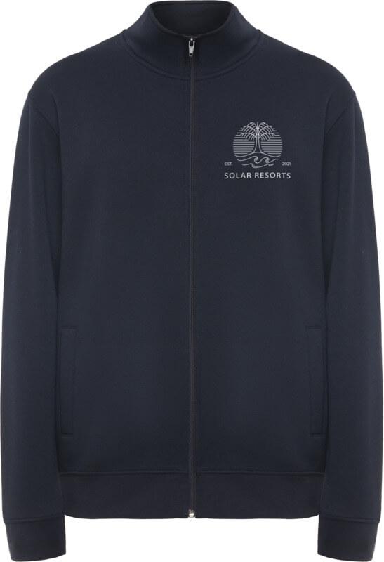 Camisola de gola alta com fecho de correr a condizer. Gola interior a condizer com tapa costuras reforçada. Tecido canelado 1×1 nos punhos e na cintura. Etiqueta amovível. O modelo masculino mede 185 cm e veste o tamanho L, e o modelo feminino mede 168 cm e veste o tamanho S.