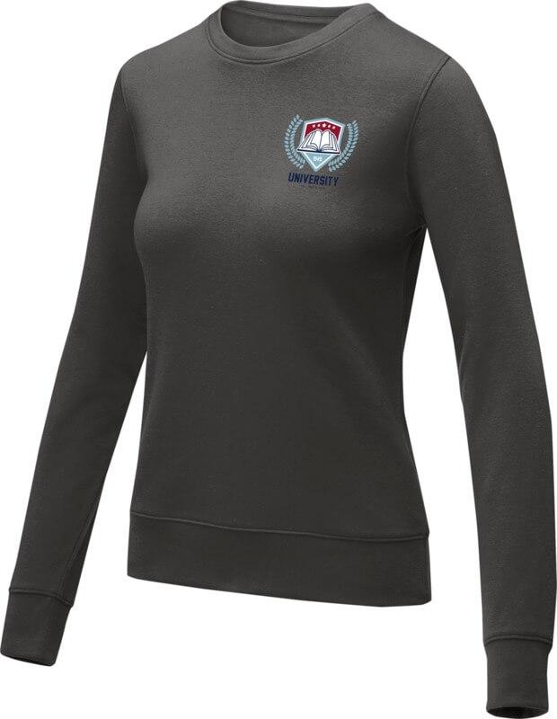 A camisola Zenon com gola redonda para mulher – alia o conforto a um design clássico. Fabricada numa mistura de algodão e poliéster de 240 g/m². O design clássico com gola redonda é acentuado por pormenores em canelado de malha plana na gola, nos punhos e na bainha inferior, proporcionando um ajuste confortável e um toque de sofisticação. Além disso, as opções de marca personalizada no interior permitem uma marca personalizada ou personalização no interior da camisola. O interior escovado acrescenta uma camada extra de aconchego, tornando-a perfeita para os dias mais frios. Com o seu design cuidado e materiais de qualidade, a camisola Zenon é um essencial versátil que acrescenta uma pitada de individualidade ao seu visual, garantindo o máximo conforto. Esta camisola foi concebida com uma forma ajustada para um look feminino.