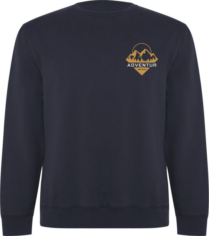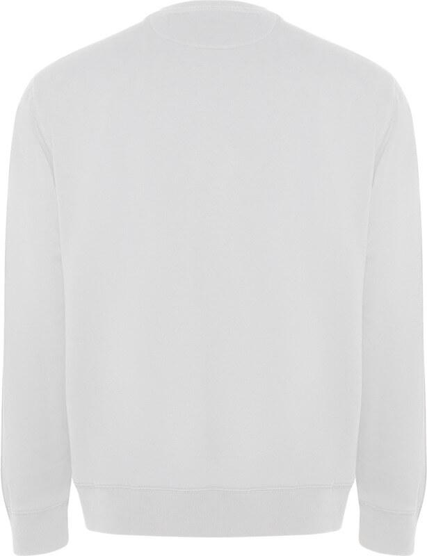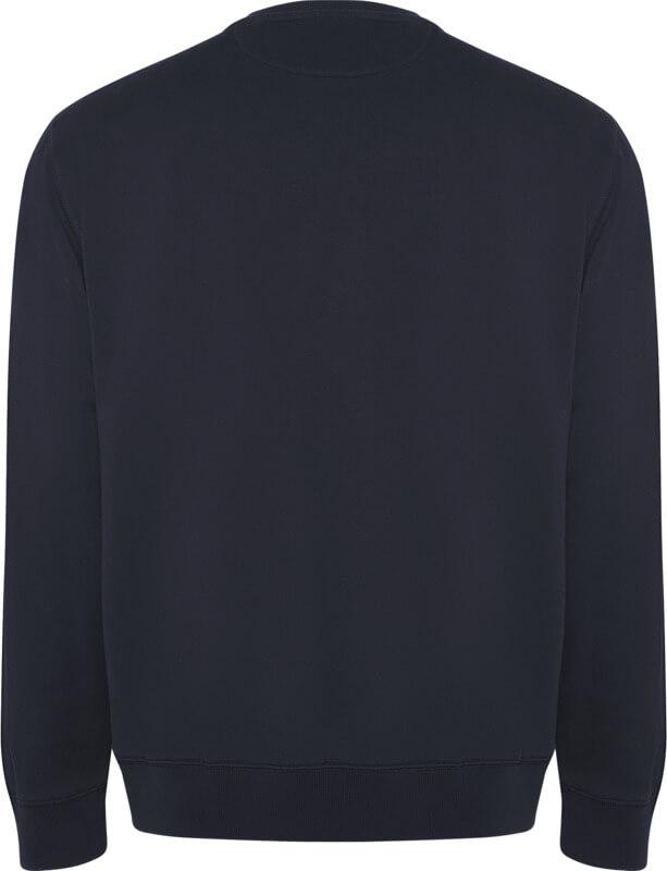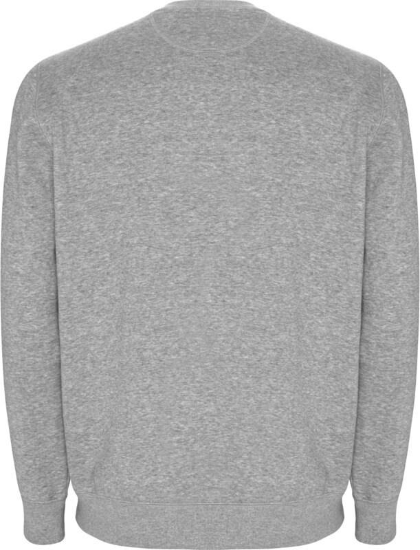 Sweatshirt unissexo em algodão orgânico penteado e poliéster reciclado. Gola, punhos e cós em ponto canelado 2×1. Adorno nas costuras em ponto overloque nos ombros, cavas, punhos e cintura. Costura meia-lua no interior da gola traseira. Etiqueta amovível. Embalagem individual em material reciclado. O modelo mede 190 cm e veste o tamanho L.