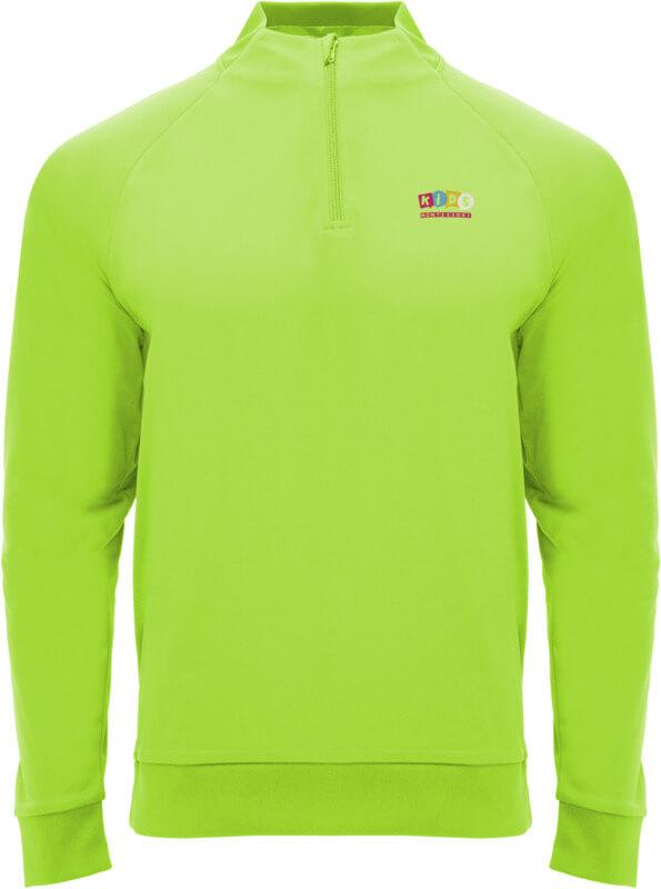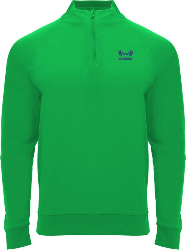 Tecido técnico. Mangas raglan. Velo interior. Gola com meio fecho e costuras forradas e reforçadas a condizer. Canelado 1 x 1 na gola traseira, punhos e bainha. Etiqueta removível. Suéter para combinar com as calças “Neapolis”.