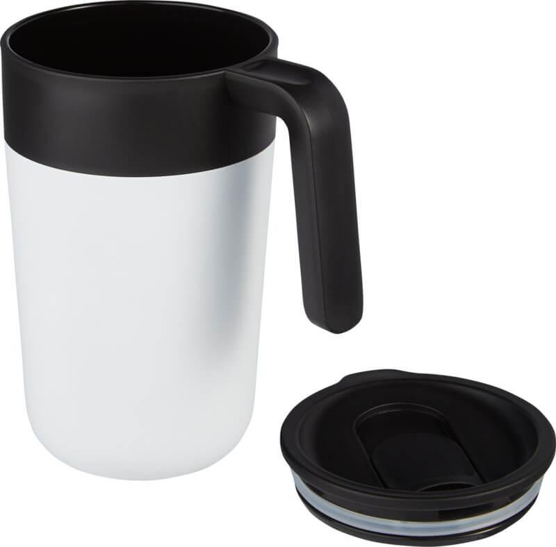 A elegante caneca “Nordia” é construída com exterior em aço inoxidável e interior em PP reciclado sustentável. A tampa interna, o controlo deslizante e a pega também são feitos de PP reciclado de fontes certificadas e responsáveis. A tampa possui um fecho deslizante, tornando esta caneca perfeita para desfrutar das suas bebidas em movimento. Sem BPA e testado e aprovado segundo a Legislação Alemã de Segurança Alimentar (LFGB), e testado para teor de ftalatos de acordo com os regulamentos REACH. Capacidade volumétrica de 400 ml. Recomenda-se a lavagem à mão.