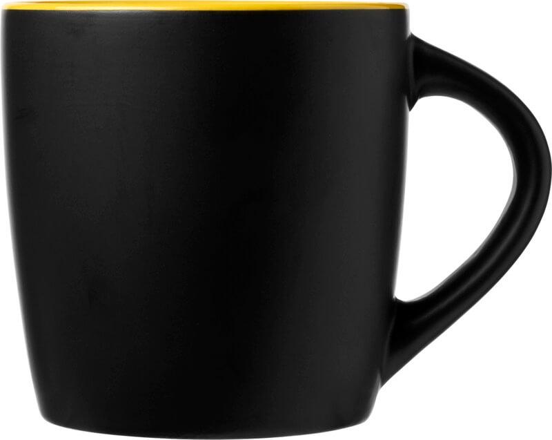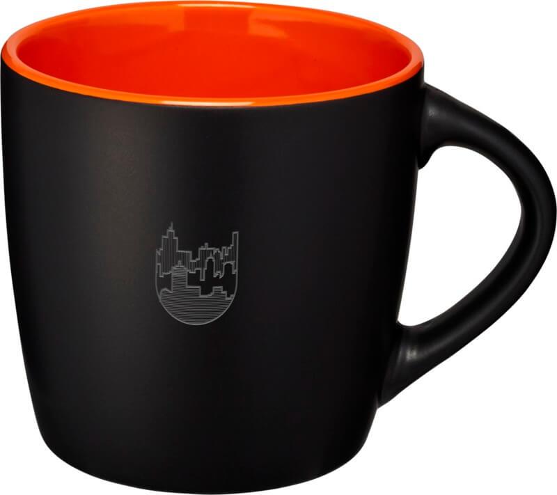 Graças ao seu acabamento exterior mate e acento de cor interior, a caneca Riviera é um modelo atraente em qualquer casa ou escritório. A caneca é robusta mas alegre comporta até 340 ml de bebidas quentes e é feita de cerâmica. A caneca de cerâmica Riviera (incluindo impressão) é lavável na máquina de lavar louça, seguindo a norma EN12875-1, durante pelo menos 125 ciclos de lavagem.