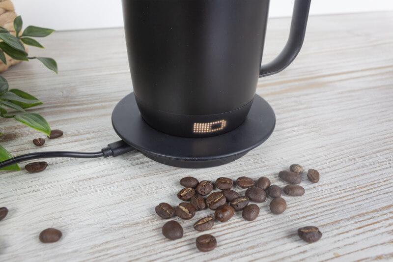 A caneca inteligente “Tempo” foi concebida para manter a sua bebida na temperatura perfeita até 1 hora e meia, apenas com um carregamento, graças à sua bateria de longa duração. Para aquecimento contínuo, basta colocá-la na base de carregamento incluída. O pequeno visor LED permite-lhe ajustar facilmente a temperatura entre 50 °C e 62,5 °C, garantindo a perfeição de cada gole. A sua classificação IPX6 à prova de água significa que pode enxaguá-lo em água corrente sem se preocupar, embora deva ser lavado à mão para um cuidado ideal. Combinando tecnologia inteligente com conveniência, a caneca “Tempo” garante sempre a temperatura ideal das suas bebidas favoritas.