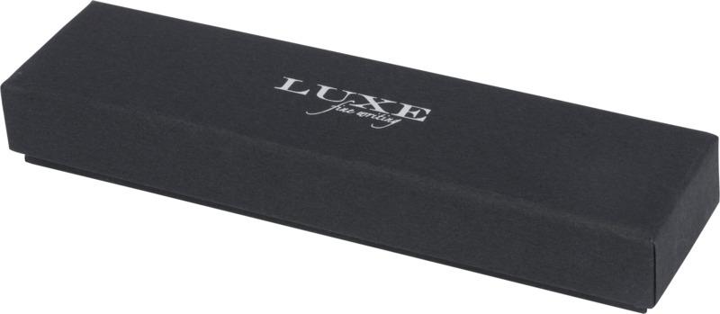 Caneta esferográfica de torção com corpo em madeira, produzida em latão com revestimento cromado, entregue numa caixa de presente “Luxe”. Tamanho da caneta esferográfica: 14,1 cm, 1,2 cm, peso: 26 gramas, comprimento de escrita: 1500 m.