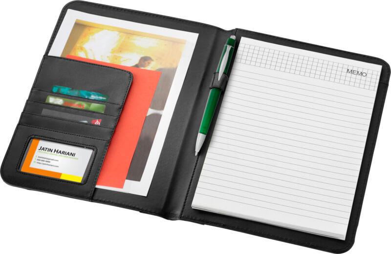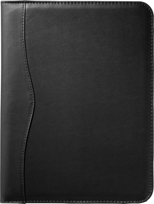 Capa com anel para caneta, bolso de documentos e bloco de notas pautado de 20 páginas. Caneta e acessórios não incluídos.
