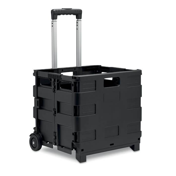 Carrinho de compras dobrável em PP com pega de aço. Carga máxima: 25 kg.