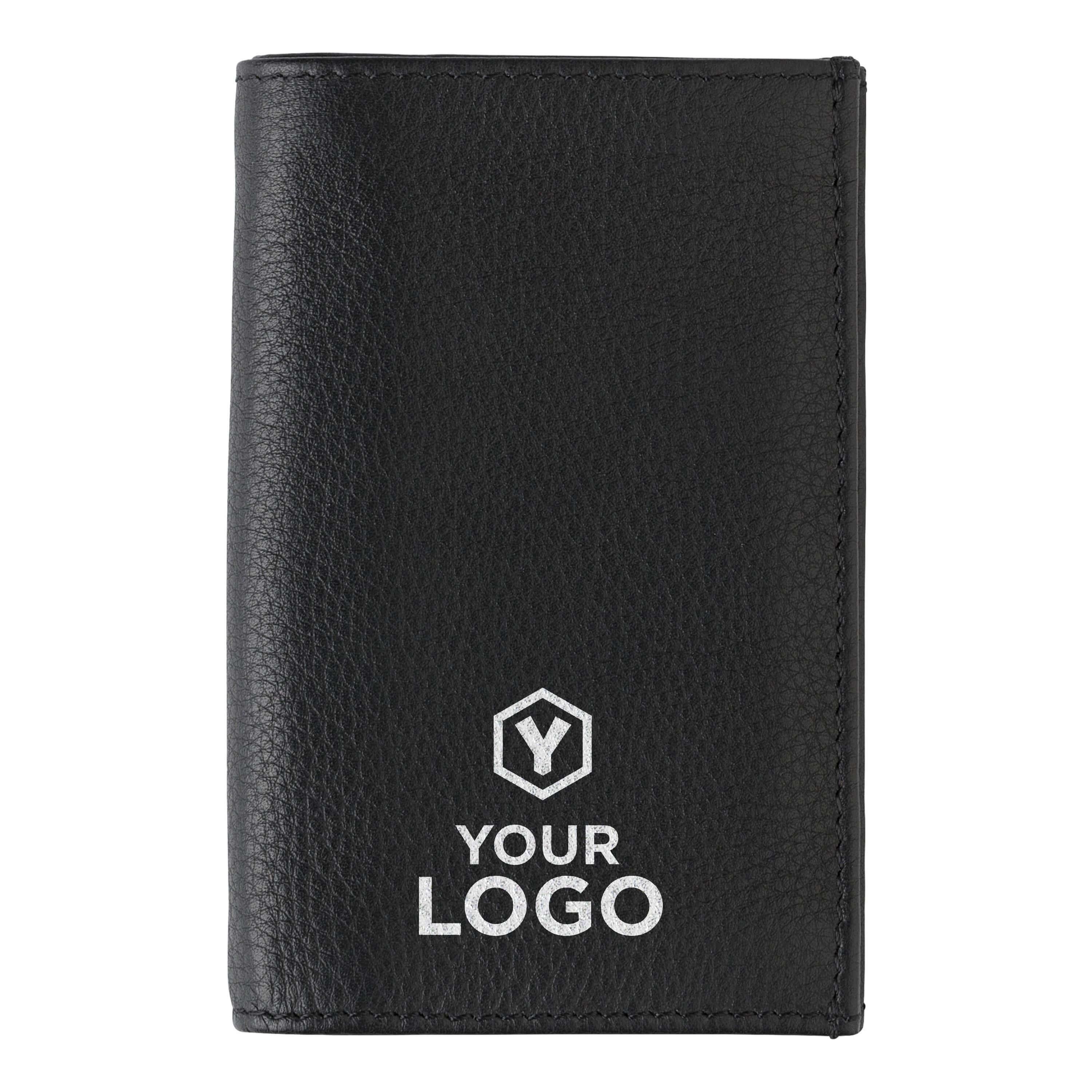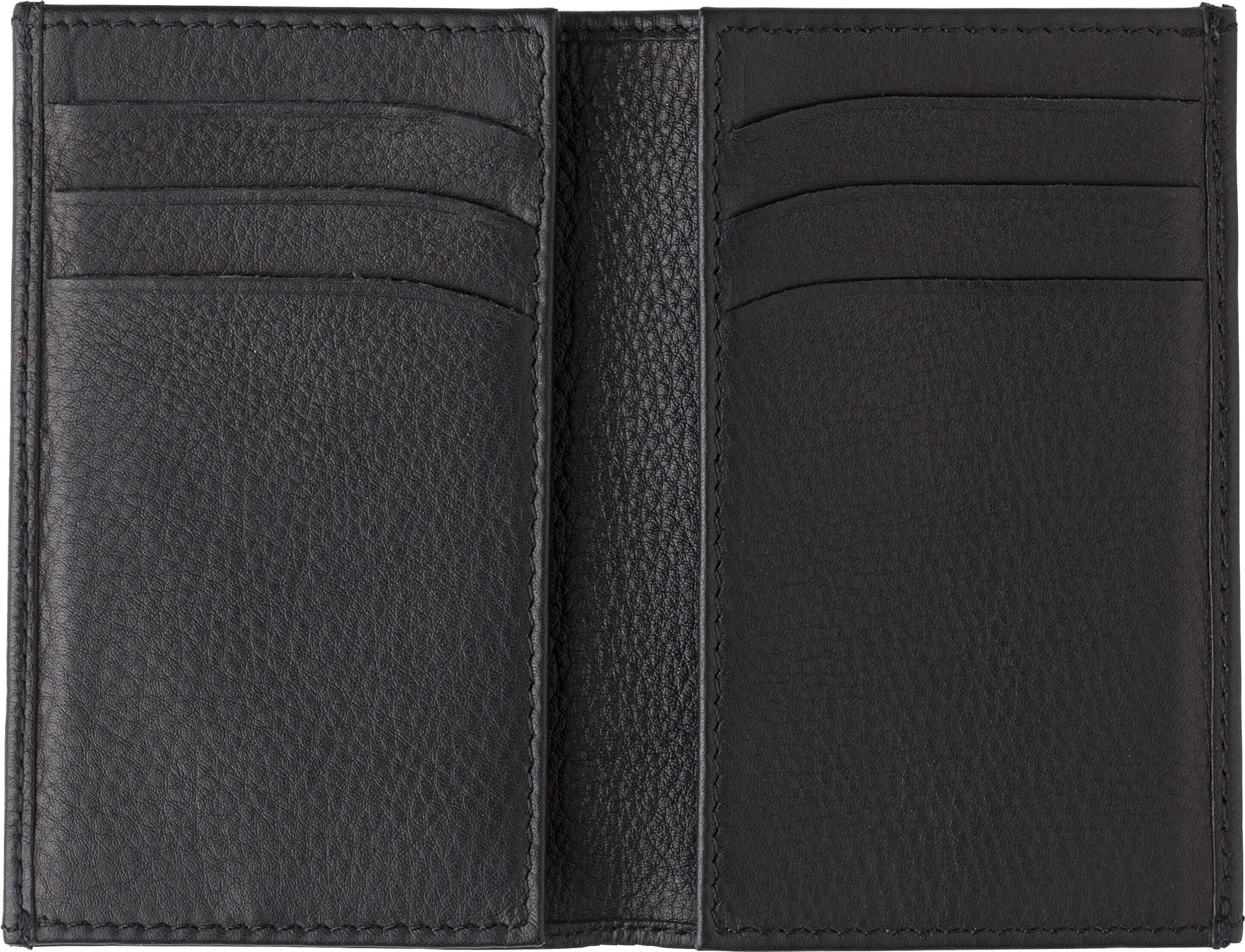 Carteira de couro (couro de cabra) para cartões de crédito RFID ( anti-deslizante) com bolsos de diferentes tamanhos no interior.