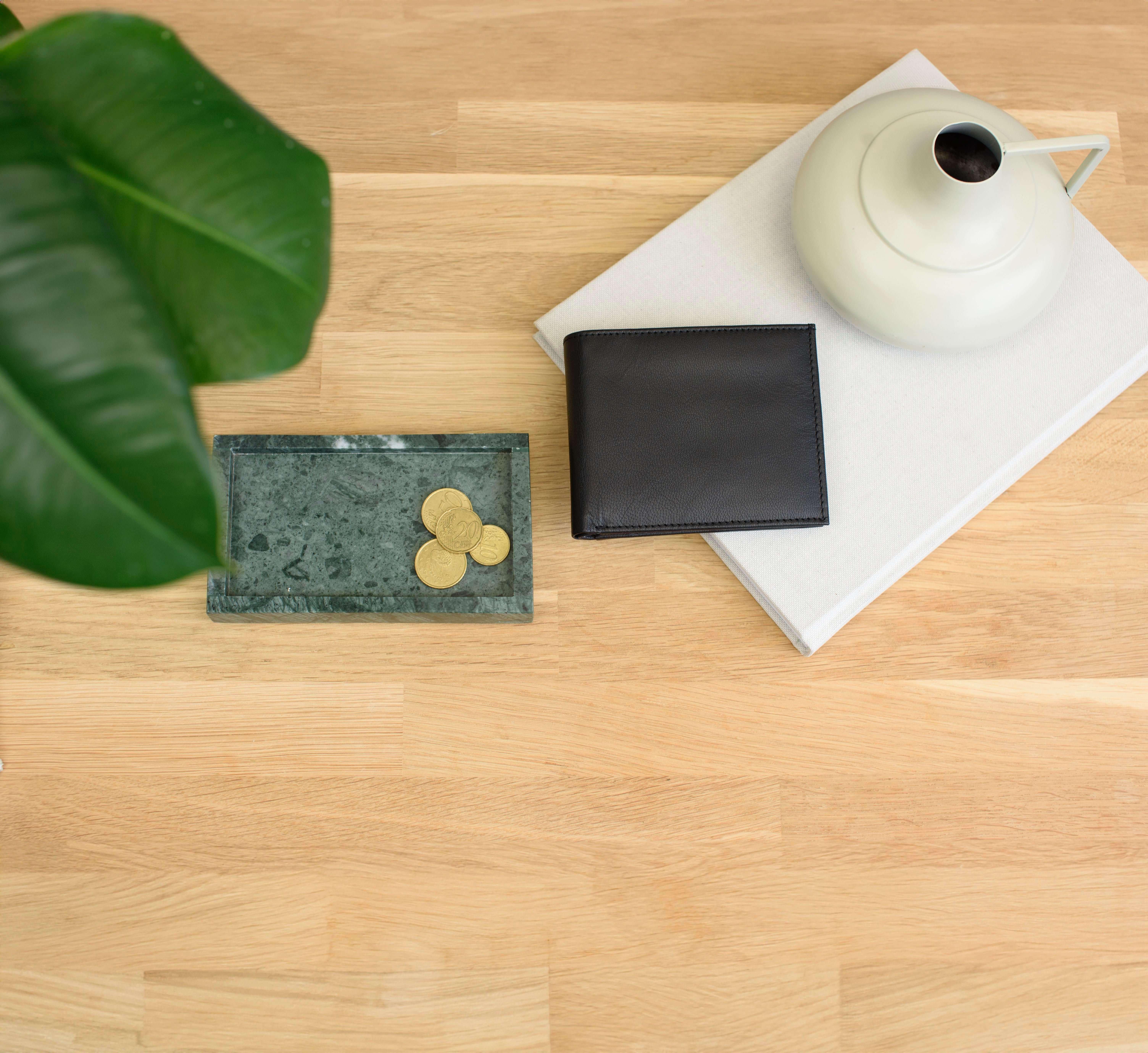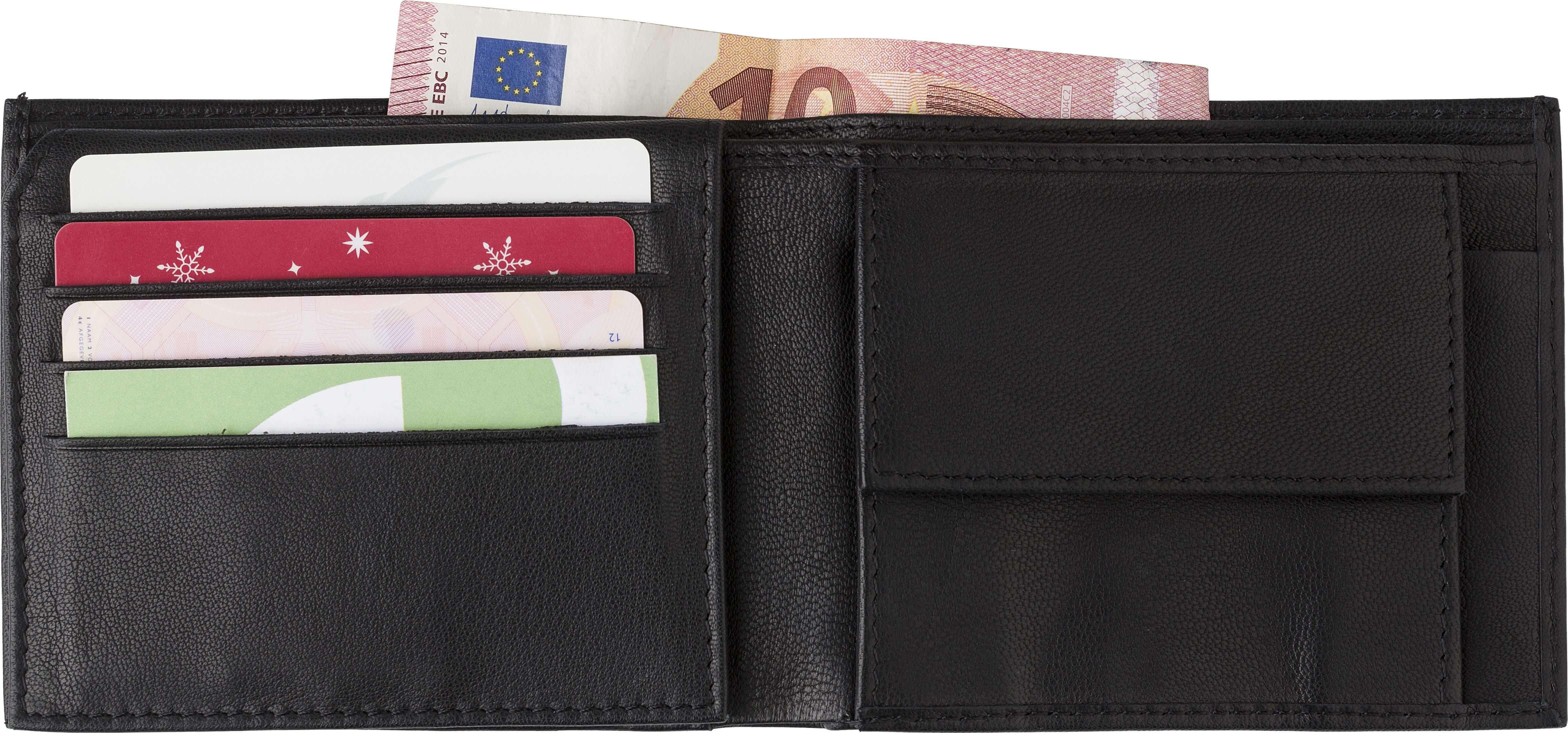 Carteira em pele (de cabra) RFID ( anti-deslizante) com compartimento para moedas com fecho de pressão e vários outros bolsos para dinheiro ou cartões.