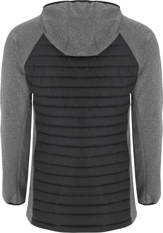 Casaco unisexo em combinação de dois tecidos: capuz fixo ajustado. Mangas raglan. Mangas, painéis laterais e capuz em tecido softshell. Tecido acolchoado de toque de penas na frente e nas costas. Fecho de correr invertido com protetor de queixo e puxador a condizer. Dois bolsos frontais com fecho de correr. Acabamento elástico a condizer na gola, nos punhos e na bainha. Etiqueta amovível. Modelo à prova de vento. O modelo masculino mede 184 cm e veste o tamanho L, e o modelo feminino mede 179 cm e veste o tamanho S.