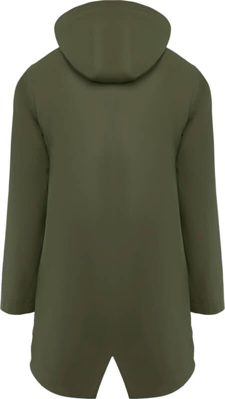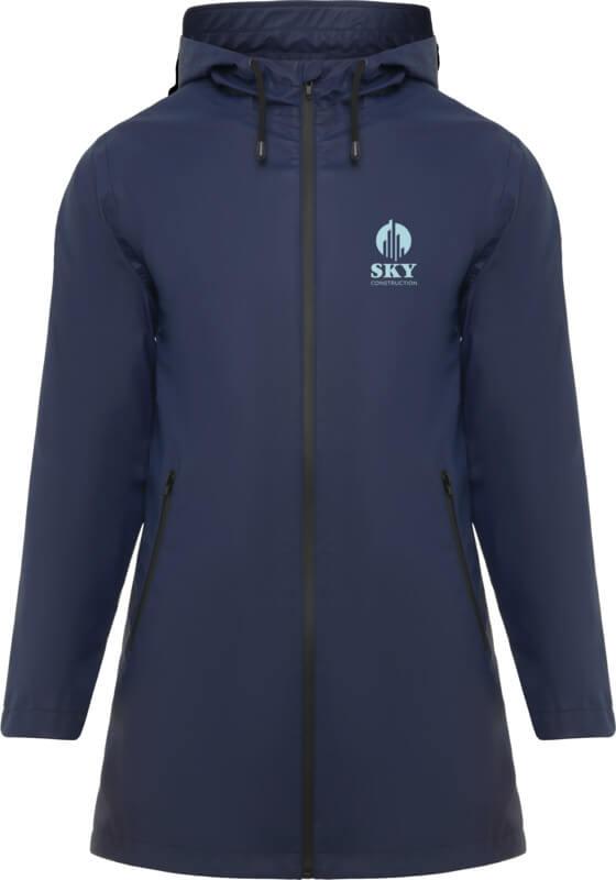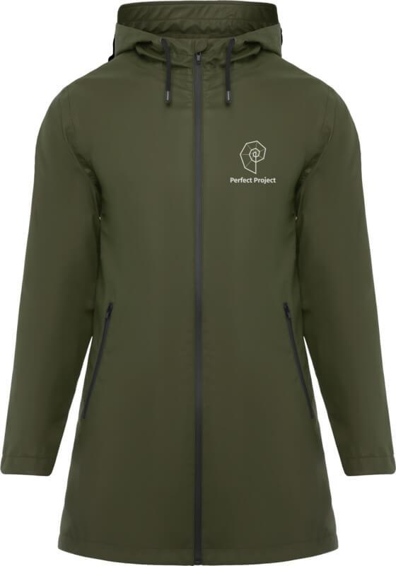 Casaco de chuva impermeável para mulher. Capuz com ponta. Fechos e costuras termicamente selados. Pormenores contrastantes em preto. Dois bolsos laterais com fecho de correr. Fenda na bainha traseira. Etiqueta amovível. Impermeável. O modelo mede 179 cm e veste o tamanho S.