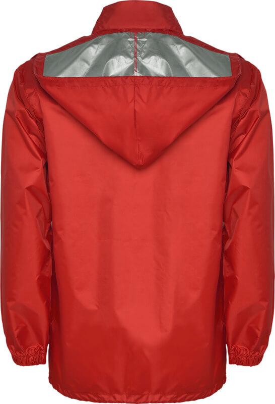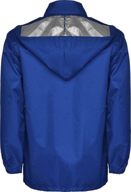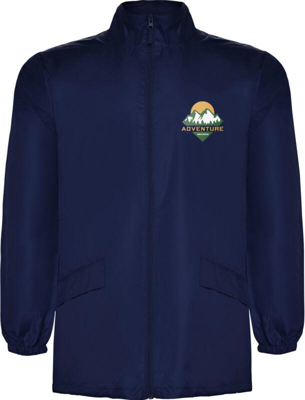 Casaco de chuva impermeável. Gola alta e capuz dobrável com cordão ajustável. Fecho de correr à frente com puxador a condizer. Dois bolsos laterais com aba. Punhos elásticos. Fita elástica no interior do bolso para dobrar e guardar. Modelo impermeável. O modelo tem 185 cm e está a usar o tamanho L.