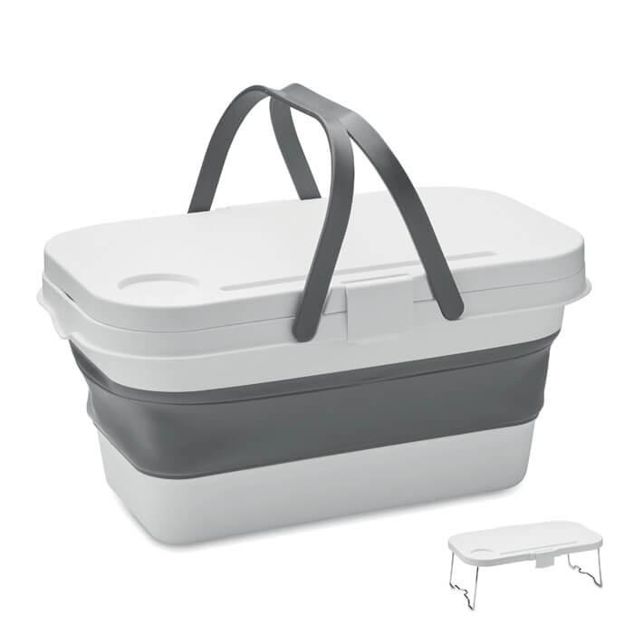 Cesto de piquenique dobrável em silicone com tábua em PP. Capacidade: 16 L.